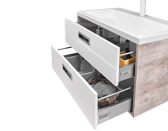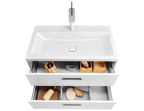K sestavě Avantgarde patří umyvadlo Cono, je vyrobené speciálně pro ni. Jedná se o umyvadlo značky Kaldewei, pro nějž platí třicetiletá záruka! Má povrchovou úpravu Perl-Effekt zajišťující snadnou údržbu a nikdy nekončící čistotu. A skříňka pod ním je prostorná.