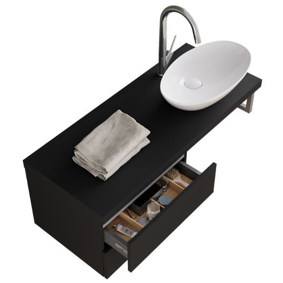 A ani pri vrcholnom minimalizme, aký predstavujú umývadlové dosky, sa nemusíte vzdať úložného priestoru. Doplnkové skrinky s bezúchytkovým prevedením Push to Open môžu byť po celej dĺžke dosky alebo len vo vybraných častiach.
