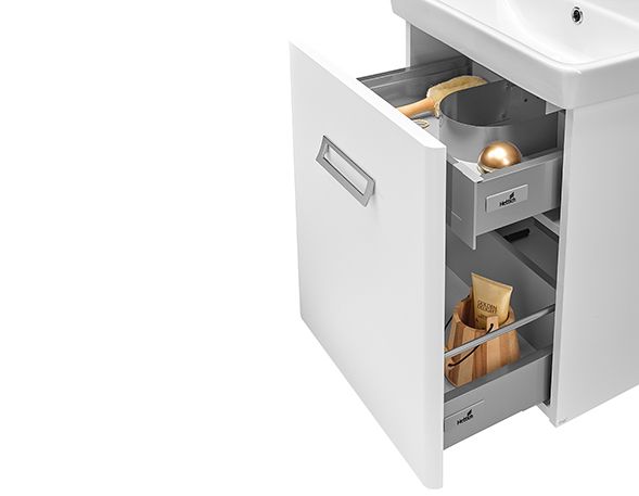 Nádherne priestorné sú umývadlové skrinky u rady Single, budete možno až ohromení, aké množstvo vašich kúpeľňových vecí pojmú. Tiché dovieranie je samozrejmosťou, pozornosť