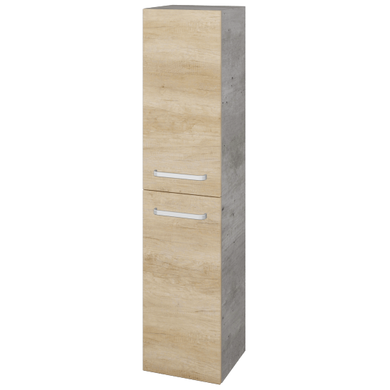 Závesná vysoká skriňa DOS SVD2 35 je rozdelená dvierkami na polovicu. V každej časti nájdete 2 výškovo nastaviteľné sklenené police. Vysoká skriňa v kúpeľni predstavuje mnoho úložného priestoru. Táto skriňa má rozmery: šírka 35 cm, hĺbka 35 cm a výška 154,5 cm. Smer otvárania dvierok skrinky si môžete zvoliť pri objednávke, rovnako ako úchytky, ktoré budú najlepšie sedieť k ďalšiemu vybaveniu kúpeľne. A ak ste zastáncami minimalizmu, zvoľte si otváranie Push-to-open bez úchytiek.