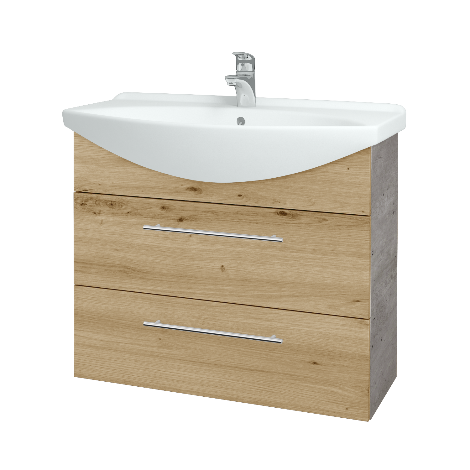 Jednoduchá závesná skrinka TAKE IT SZZ2 85 vás zaujme nielen svojim dizajnom a prepojením oblých a ostrých tvarov, ale aj svojou úspornou hĺbkou. Umývadlová skrinka je tak vhodná aj do menších kúpeľní. 2 priestranné zásuvky s tlmeným dovieraním poskytnú dostatok úložného miesta. Zásuvky sú uložené na kvalitnom nemeckom kovaní Hettich, ktoré zaisťuje tlmené dovieranie. Kovanie Hettich získate s doživotnou zárukou a celú skrinku potom s predĺženou zárukou 5 rokov.