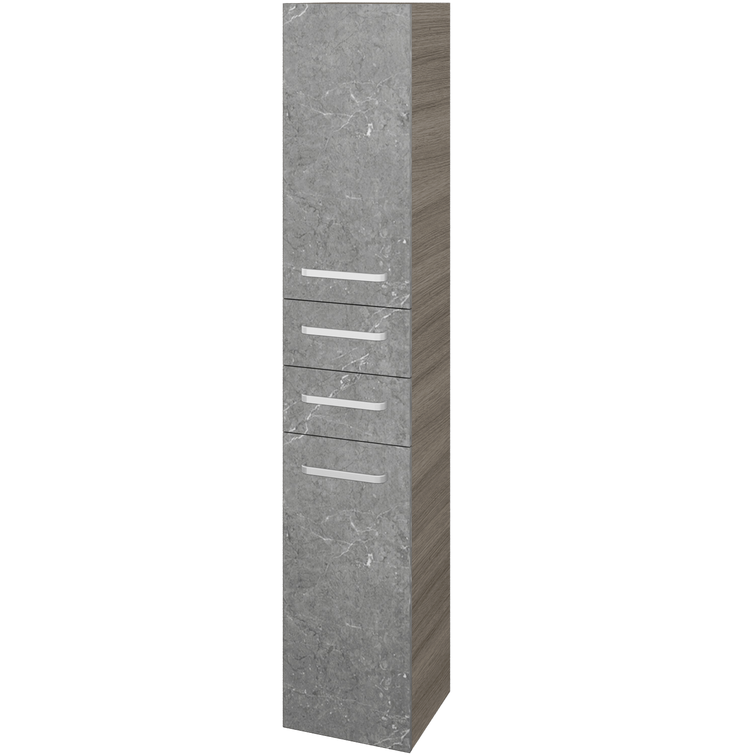 Závesná vysoká skriňa DOS SVD2Z2 35 má 2 veľké časti s policami a 2 zásuvky. Za dvierkami nájdete 4 výškovo polohovateľné sklenené police. Uprostred skrinky sú 2 zásuvky, ktoré sú svojou veľkosťou a prístupnosťou ideálne na uloženie každodenných maličkostí. Vysoká skriňa v kúpeľni predstavuje mnoho úložného priestoru. Smer otvárania dvierok skrinky si môžete zvoliť pri objednávke, rovnako ako úchytky, ktoré budú najlepšie sedieť k ďalšiemu vybaveniu kúpeľne.