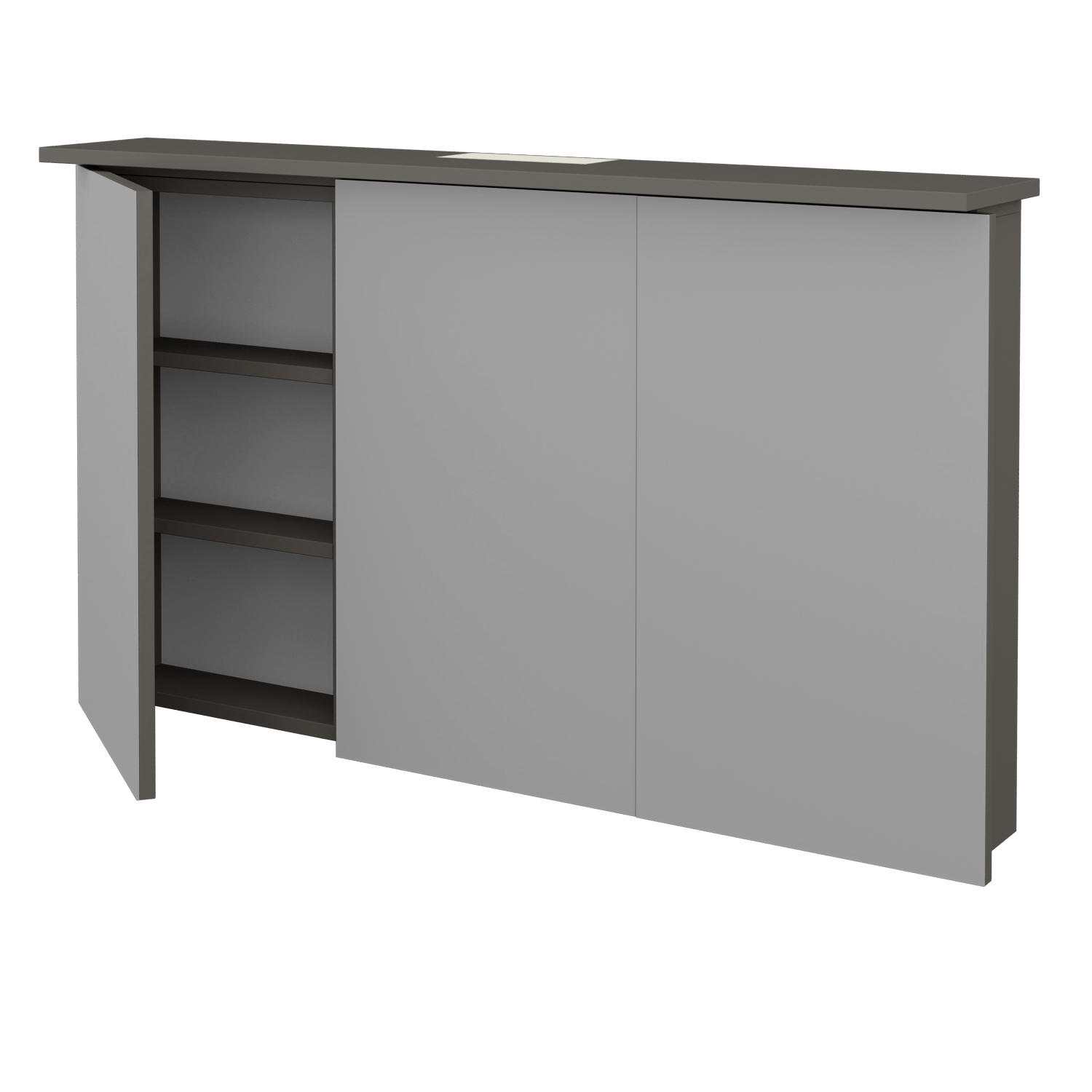Priestranná trojdverová galérka SANI GA3O 120 s bohatou zrkadlovou plochou bude ozdobou každej veľkej kúpeľne. Symetrické rozdelenie dvierok 40/40/40 poteší oko, rovnako ako otváranie dvierok za presah – toto otváranie totiž výrazne obmedzí odtlačky prstov na zrkadlách. Galérka je vo vnútri rozdelená na 3 časti a každá má 2 drevené výškovo polohovateľné police v rovnakom dekore alebo drevodekore, aký si vyberiete na korpus a dvierka. Všetko tak jednoducho ladí dohromady nielen po otvorení galérky, ale aj v kúpeľni. V hornej predĺženej lište je integrované osvetlenie, ktoré ocenia všetci v domácnosti.