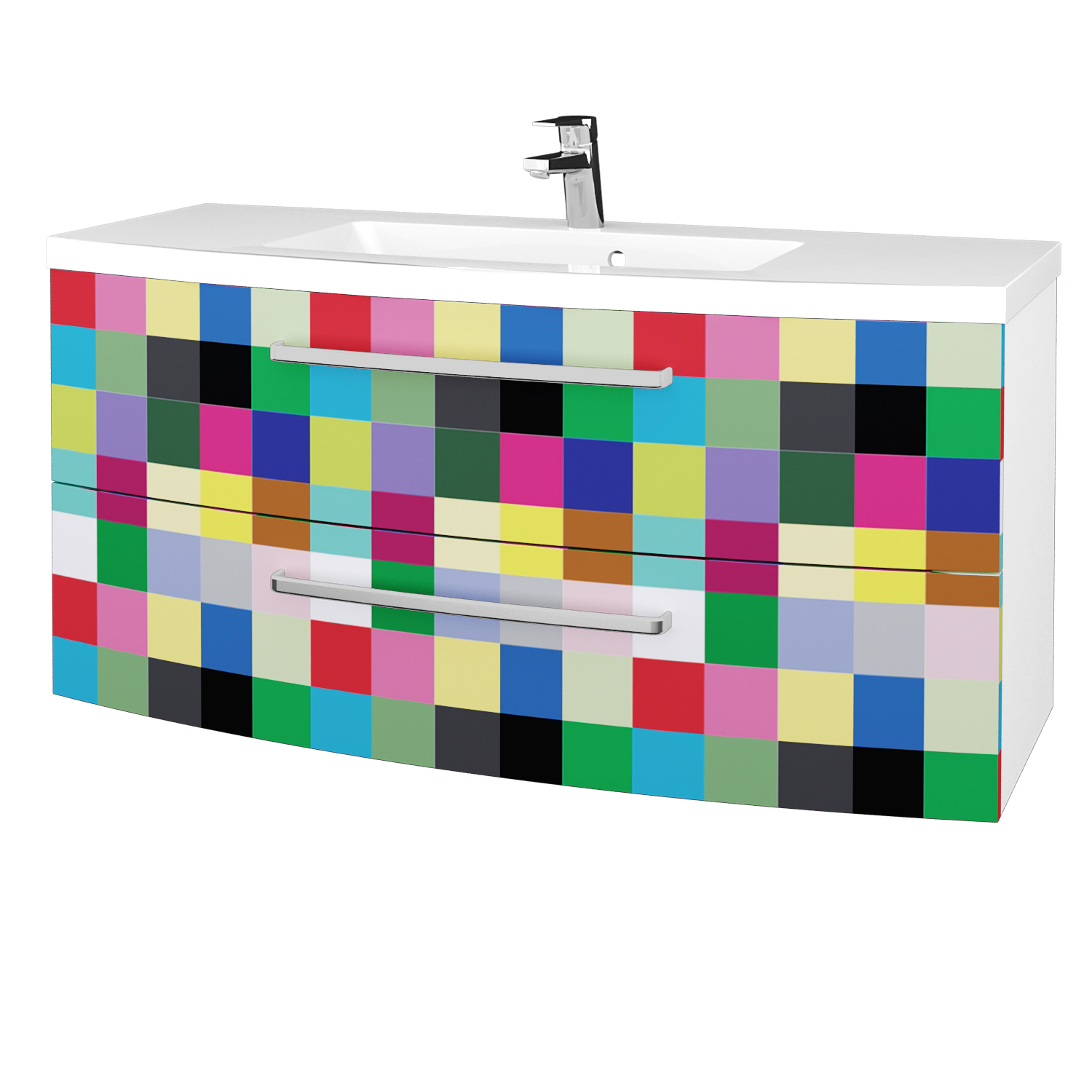 Umývadlová skrinka (1200×420×445) s 1 zásuvkou a keramickým umývadlom Pura 120 s 2 otvormi na…