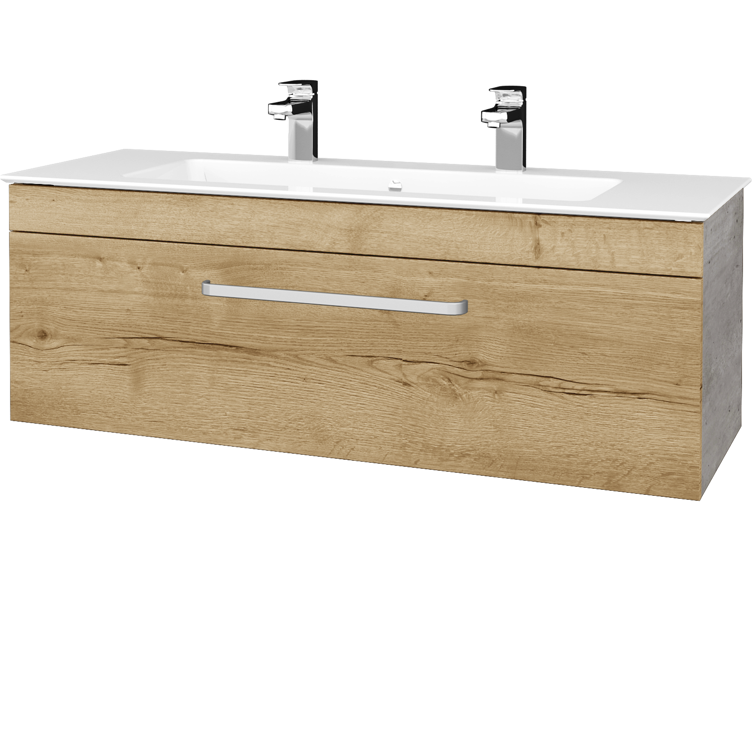 Prezrieť katalógUmývadlová skrinka (1200×420×445) s 1 zásuvkou a keramickým umývadlom Pura 120 s 2 otvormi na batériu Zobraziť viac