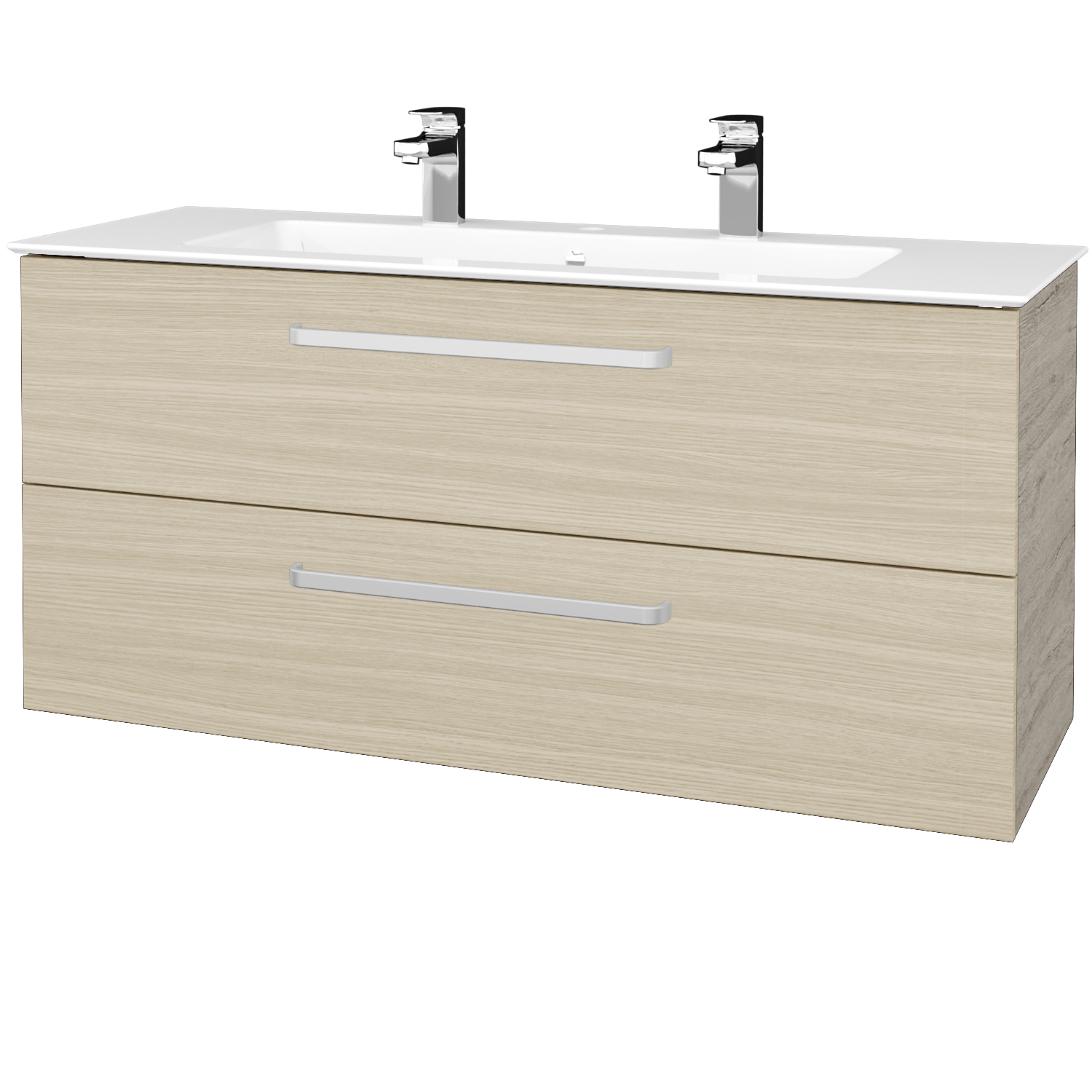 Umývadlová skrinka (1200×420×445) s 2 zásuvkami a keramickým umývadlom Pura 120