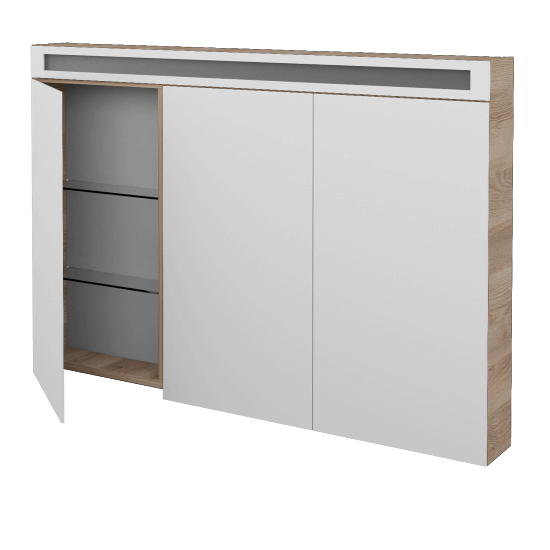 Integrované LED osvetlenie je umiestnené v hornej časti skrinky za lištou z pieskovaného skla, ktorá prepúšťa svetlo bez toho, aby narúšala celkový dizajn skrinky. Svetlo sa ovláda nástenným vypínačom, ktorému musí odpovedať stavebná pripravenosť v kúpeľni. Výkon LED osvetlenia je 24,8 W a celá galérka spĺňa krytie IP 44.