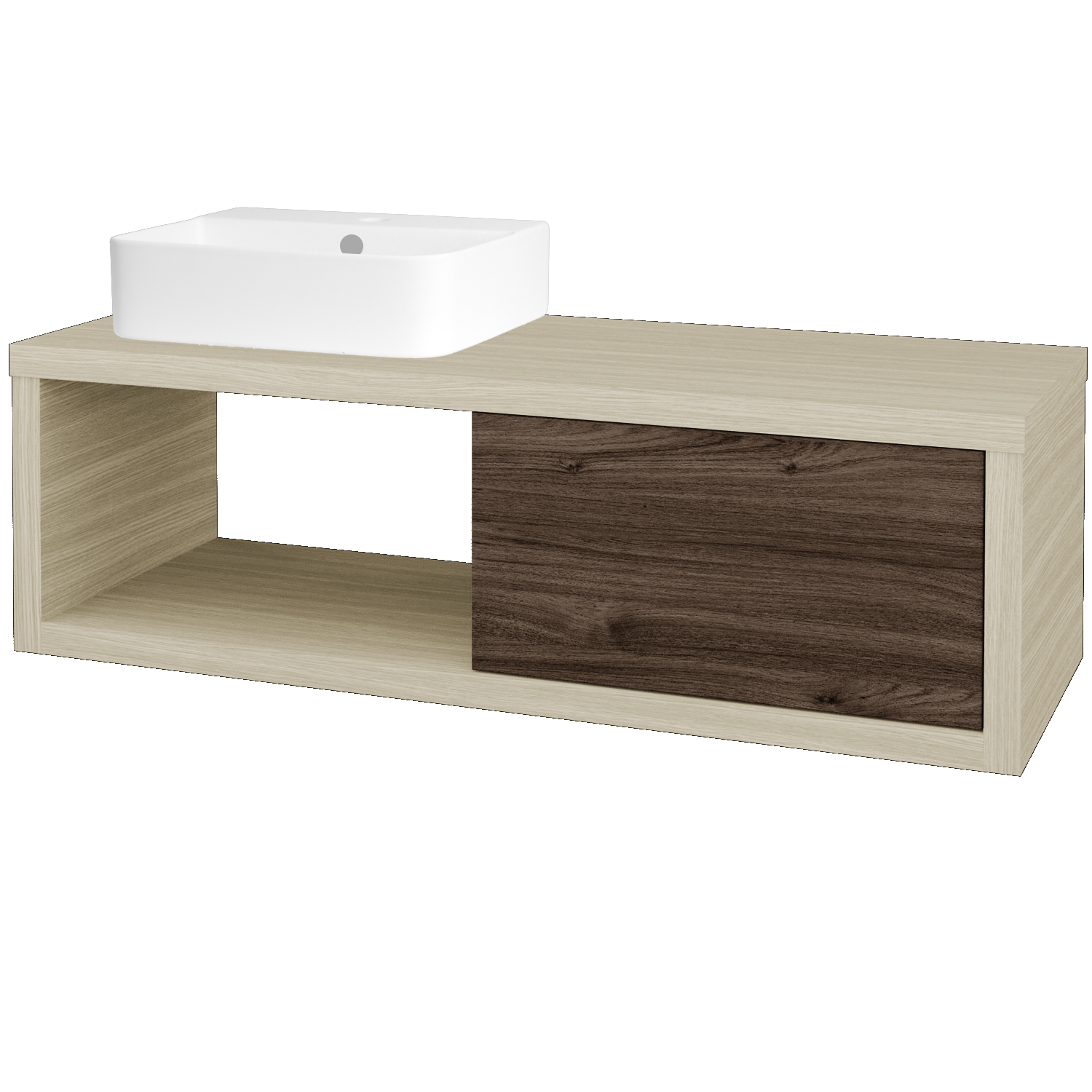 Páči sa vám možnosť mať otvorený výklenok a zároveň potrebujete uložiť niekoľko predmetov do zásuvky? Skvelým riešením je nástenná umývadlová skrinka STORM SZZO 120, ktorá tieto možnosti spája, a to ešte s variabilným umiestnením umývadla a bočným delením pre niku a zásuvku. Je to moderná umývadlová skrinka, ktorá spája minimalistický štýl s praktickou stránkou odkladania predmetov dennej potreby tak, aby nerušili výsledný efekt v kúpeľni.