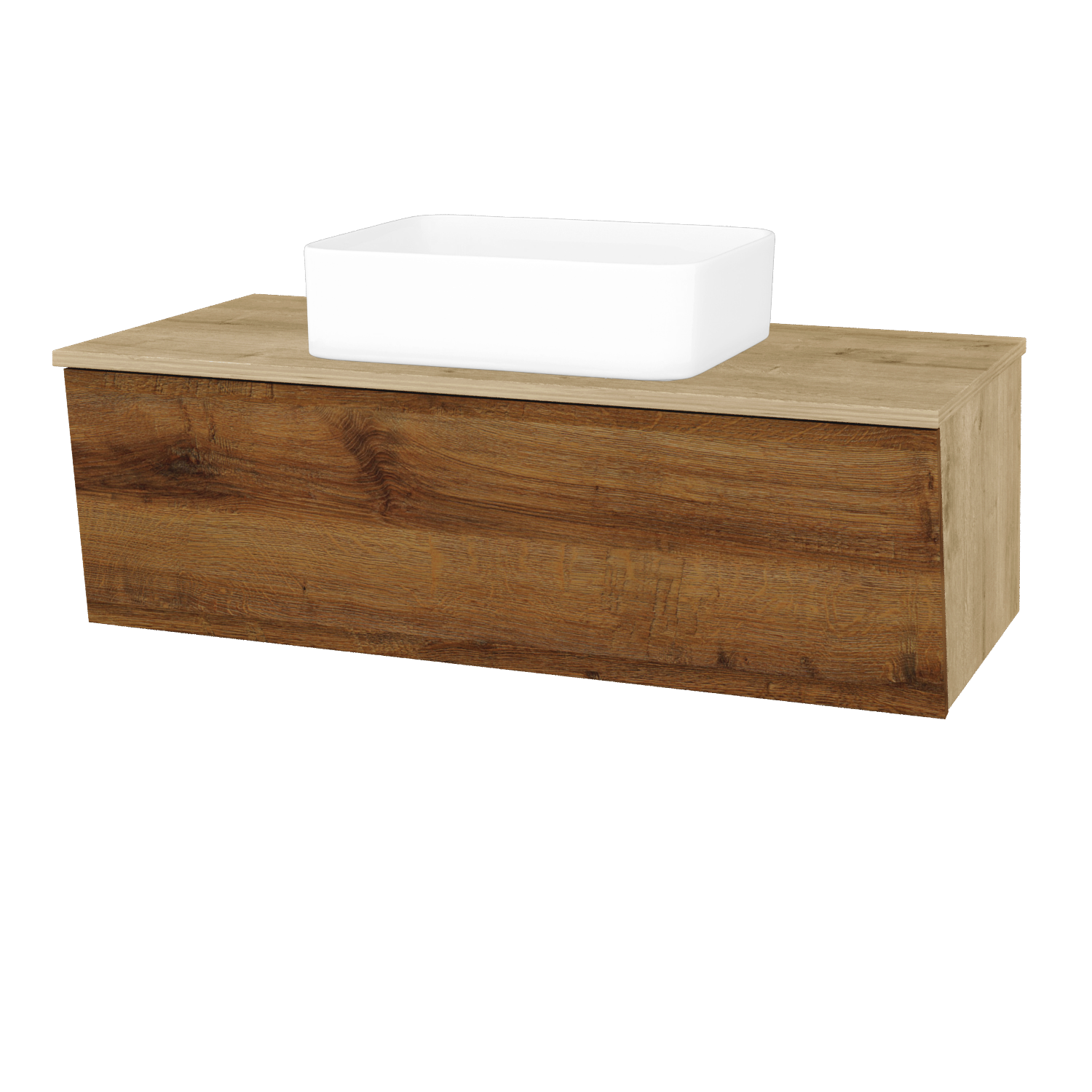 Závesná umývadlová skrinka (1200x370x500) s 2 zásuvkami a keramickým umývadlom Kube