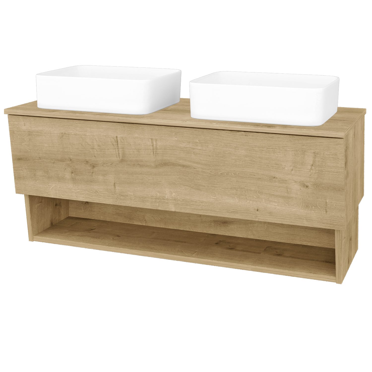 Prezrieť katalógUmývadlová skrinka (1214x480x460) s 1 zásuvkou, nikou a dvomi keramickými umývadlami Joy Zobraziť viac