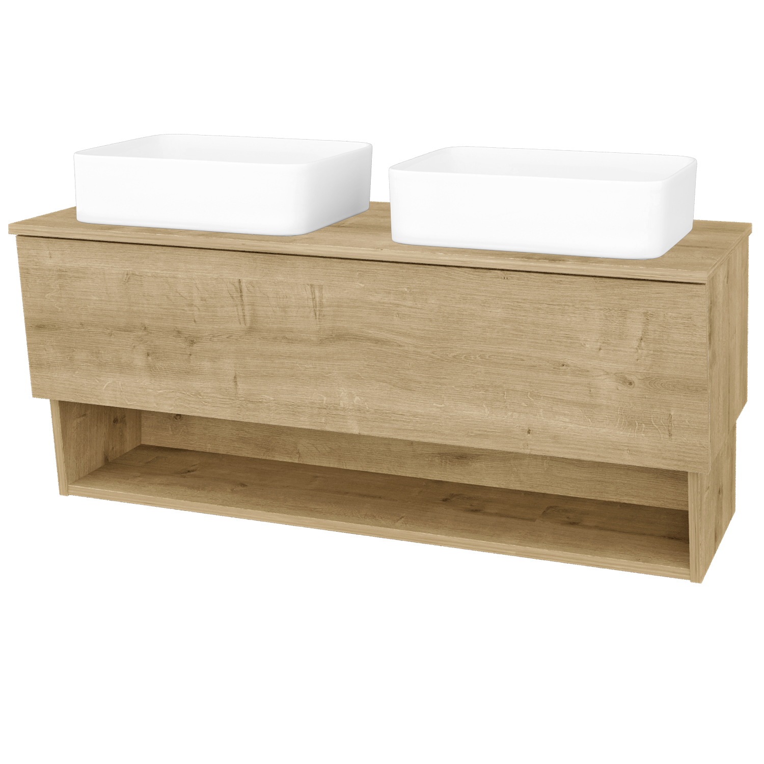 Prezrieť katalógUmývadlová skrinka (1214x480x460) s 1 zásuvkou, nikou a dvomi keramickými umývadlami Joy Zobraziť viac