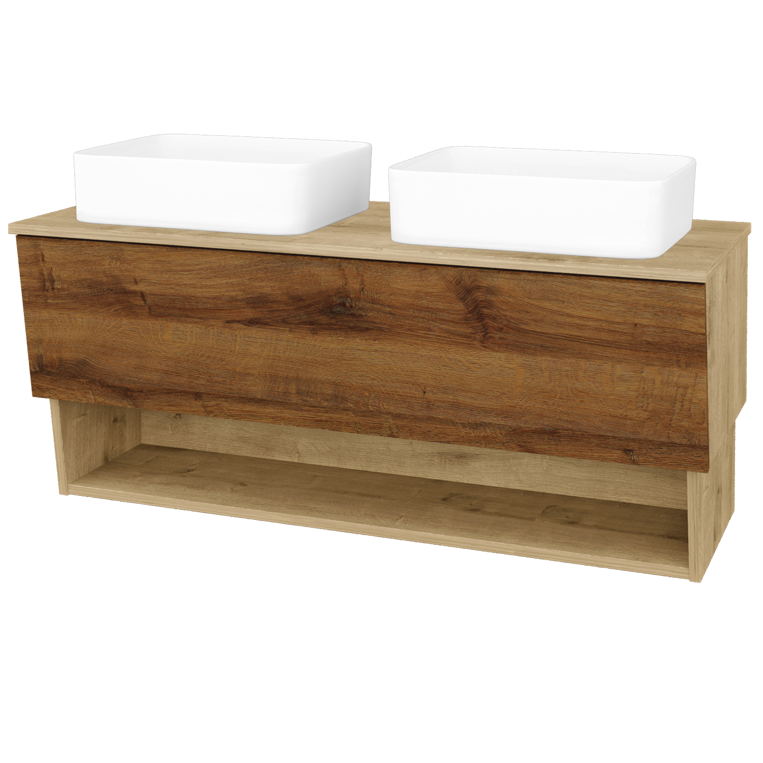 Prezrieť katalógUmývadlová skrinka (1214x480x460) s 1 zásuvkou, nikou a dvomi keramickými umývadlami Joy Zobraziť viac