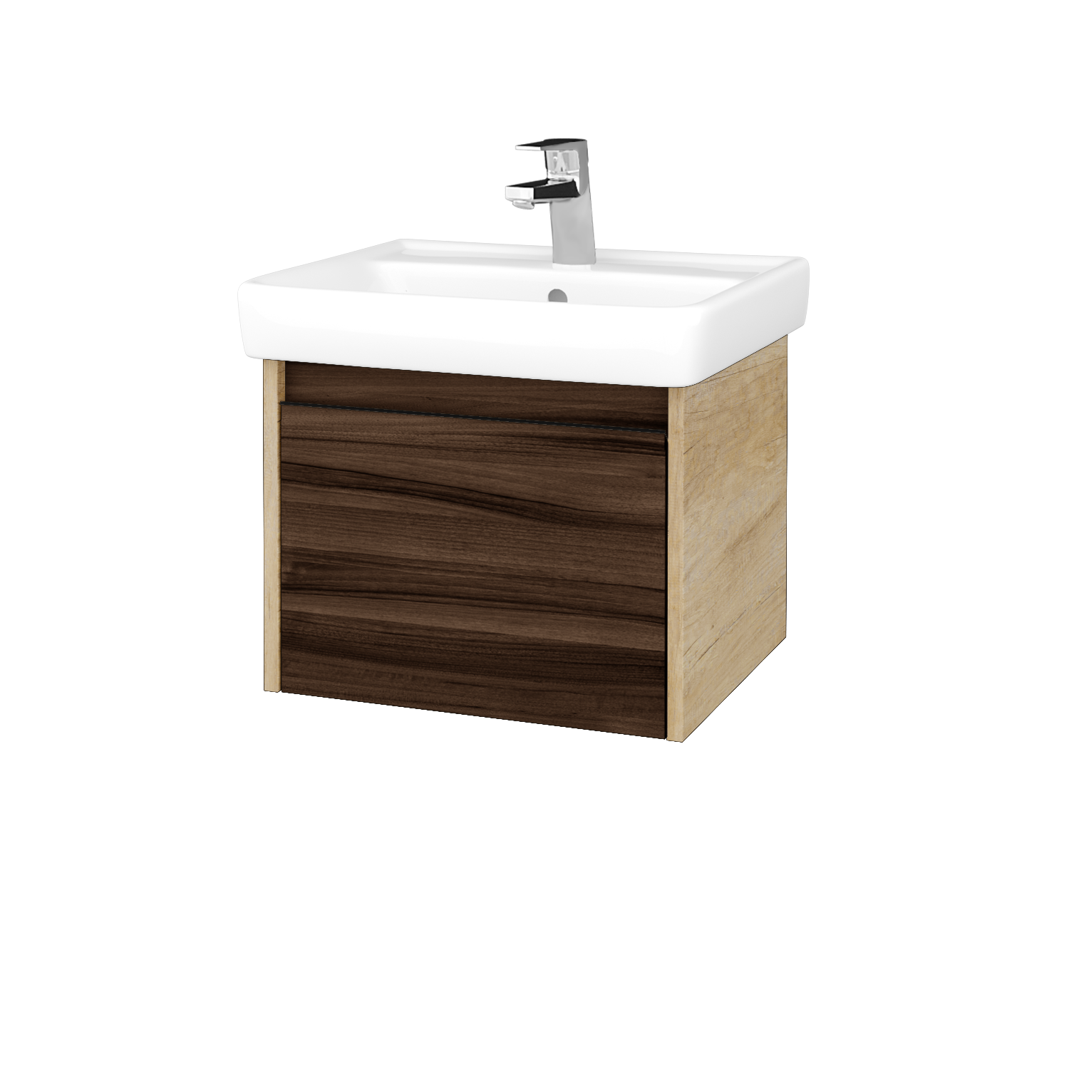 Závesná umývadlová skrinka (495x390x438) s 1 zásuvkou a keramickým umývadlom Q 55