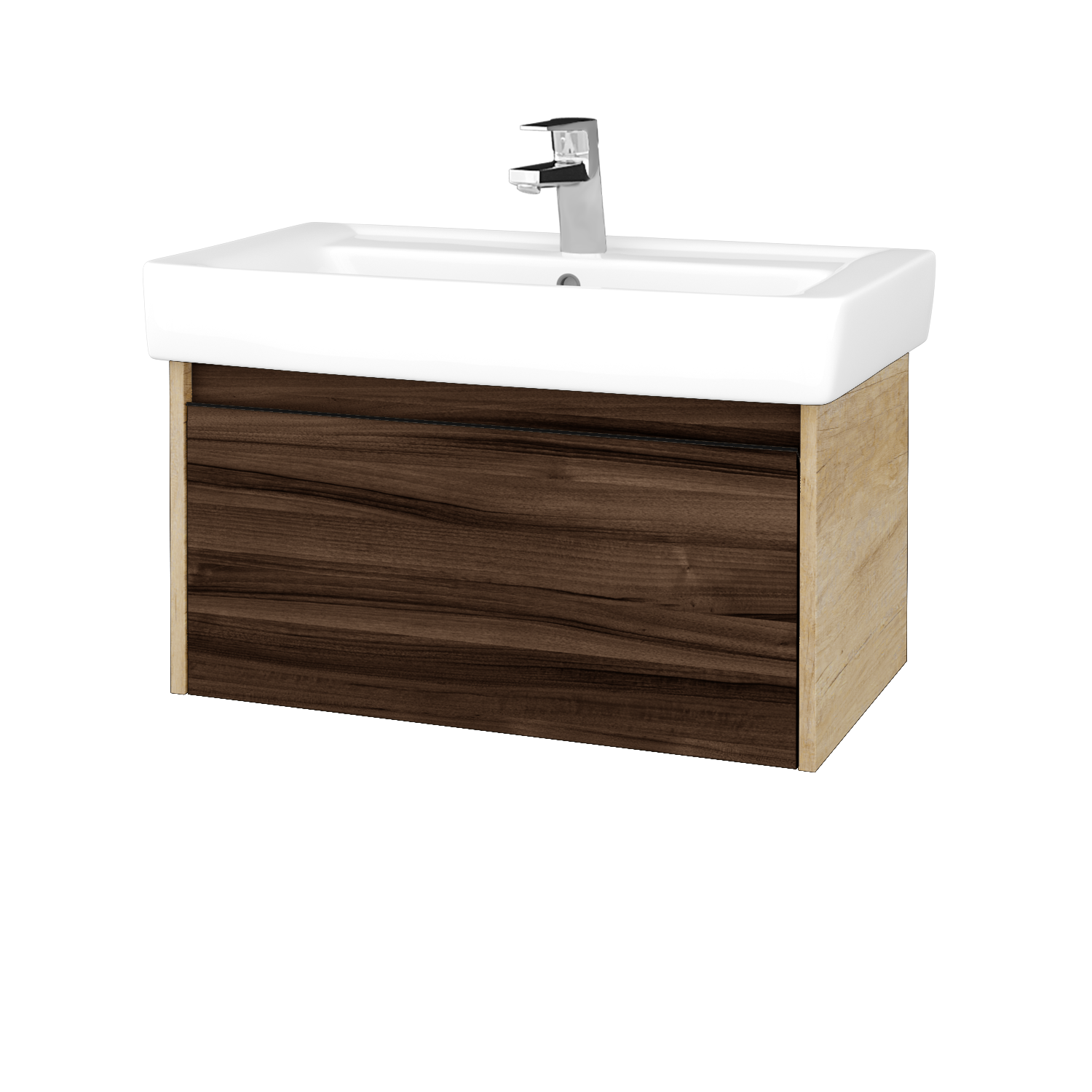 Závesná umývadlová skrinka (645x390x438) s 1 zásuvkou a keramickým umývadlom Q 70