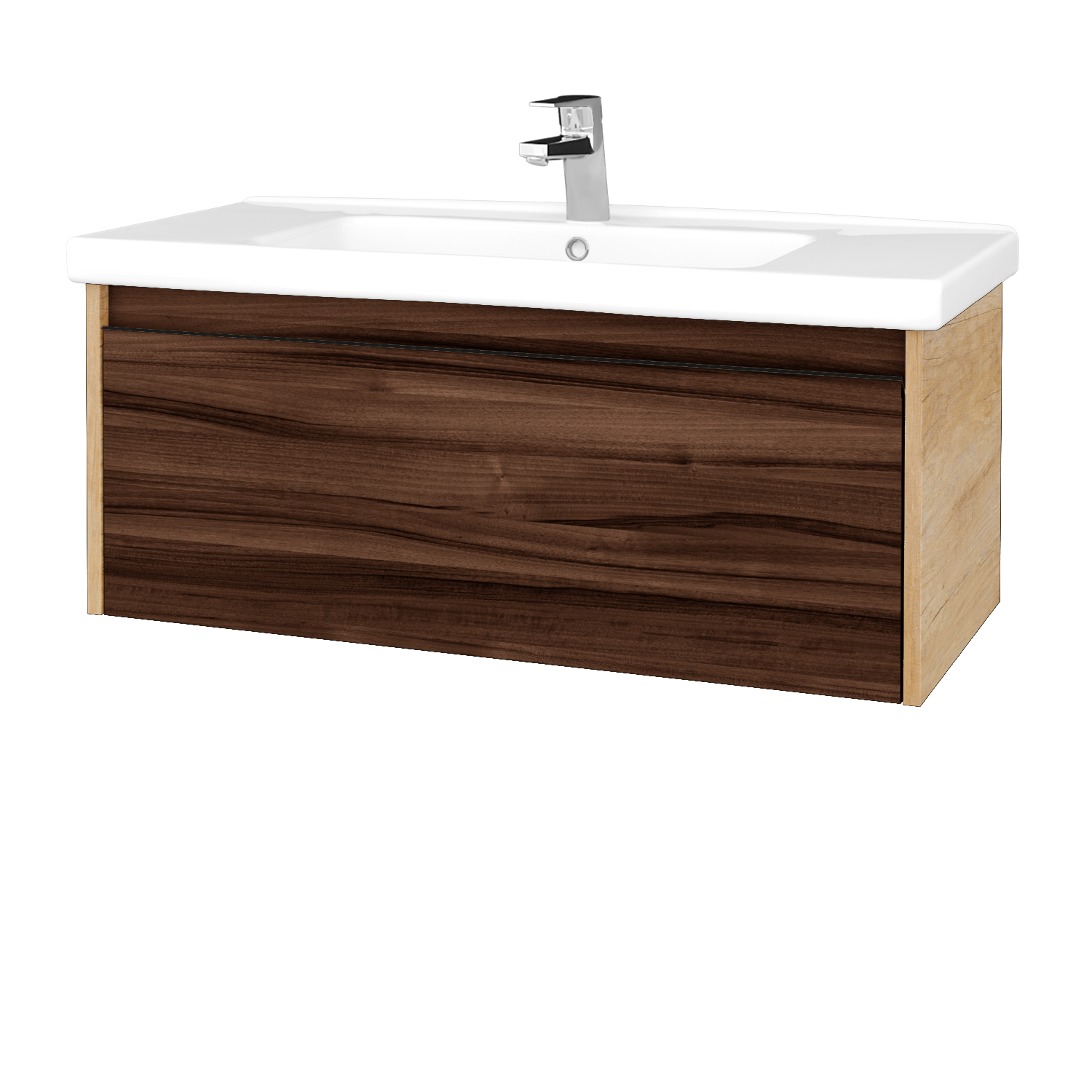 Podčiarknuť celkový vzhľad skrinky môžete aj zvoleným dekorom alebo drevodekorom, ktorý bude ladiť s vašou budúcou kúpeľňou. Pre viac rustikálny vzhľad si môžete vybrať z mnohých odtieňov drevodekorov, ktoré sú najobľúbenejším variantom vzhľadu umývadlovej skrinky BONO. Spoločne však môžete kombinovať viac odtieňov na korpuse a farebného prevedenia čela zásuvky.