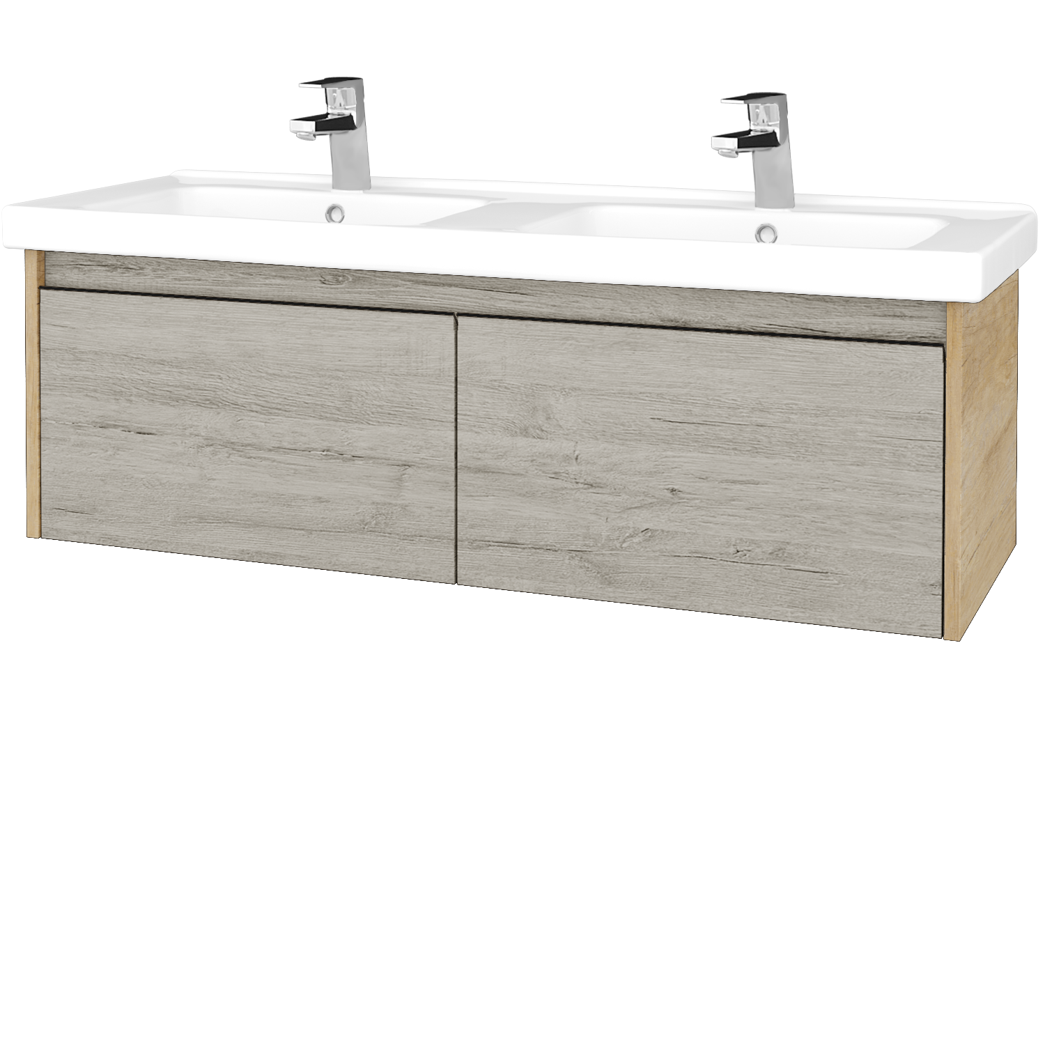 Prezrieť katalógZávesná umývadlová skrinka s 2 zásuvkami a keramickým dvojumývadlom Myjoys Harmonia 125 Zobraziť viac