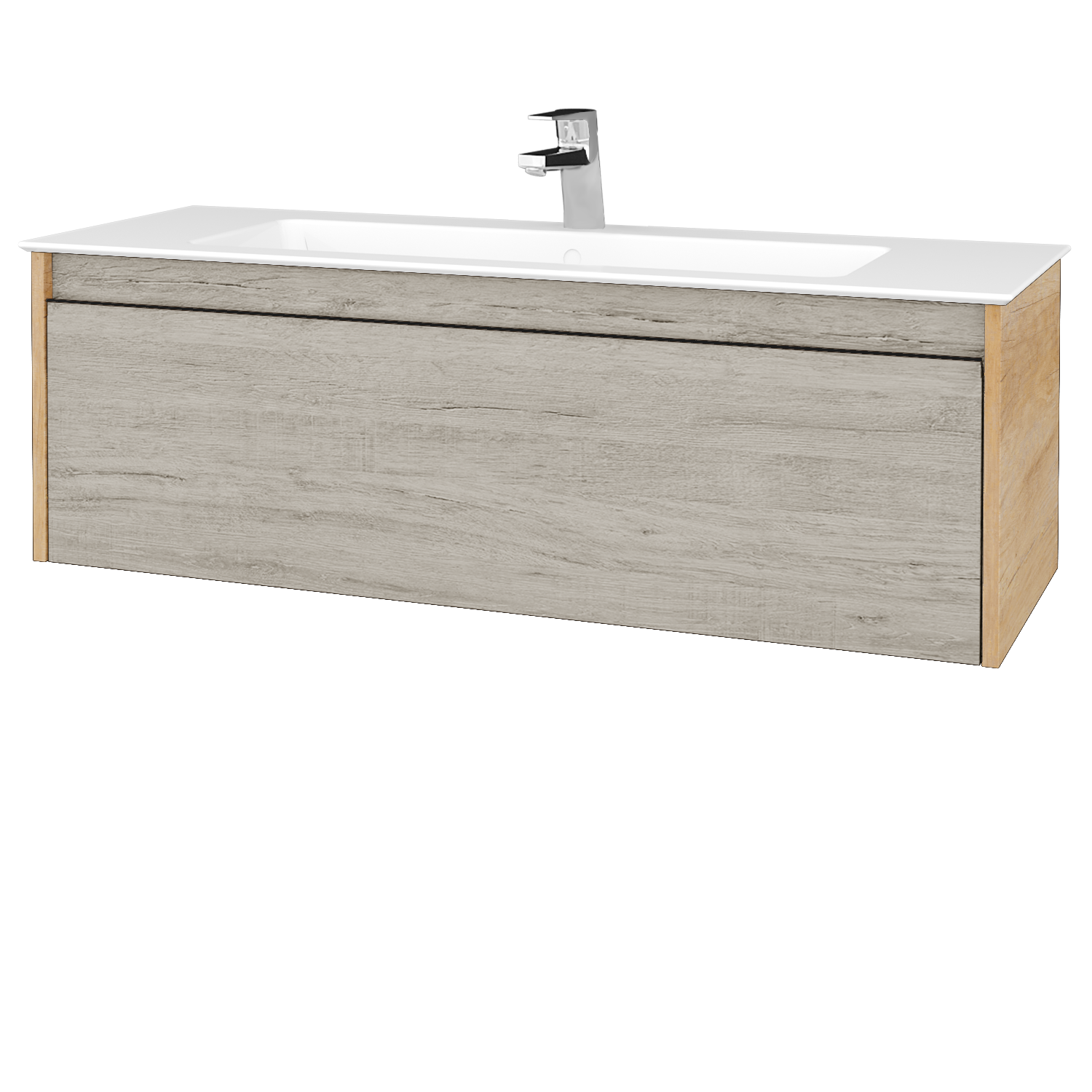 Prezrieť katalógZávesná umývadlová skrinka (1200x390x445) s 1 zásuvkou a keramickým umývadlom Pura 120 Zobraziť viac