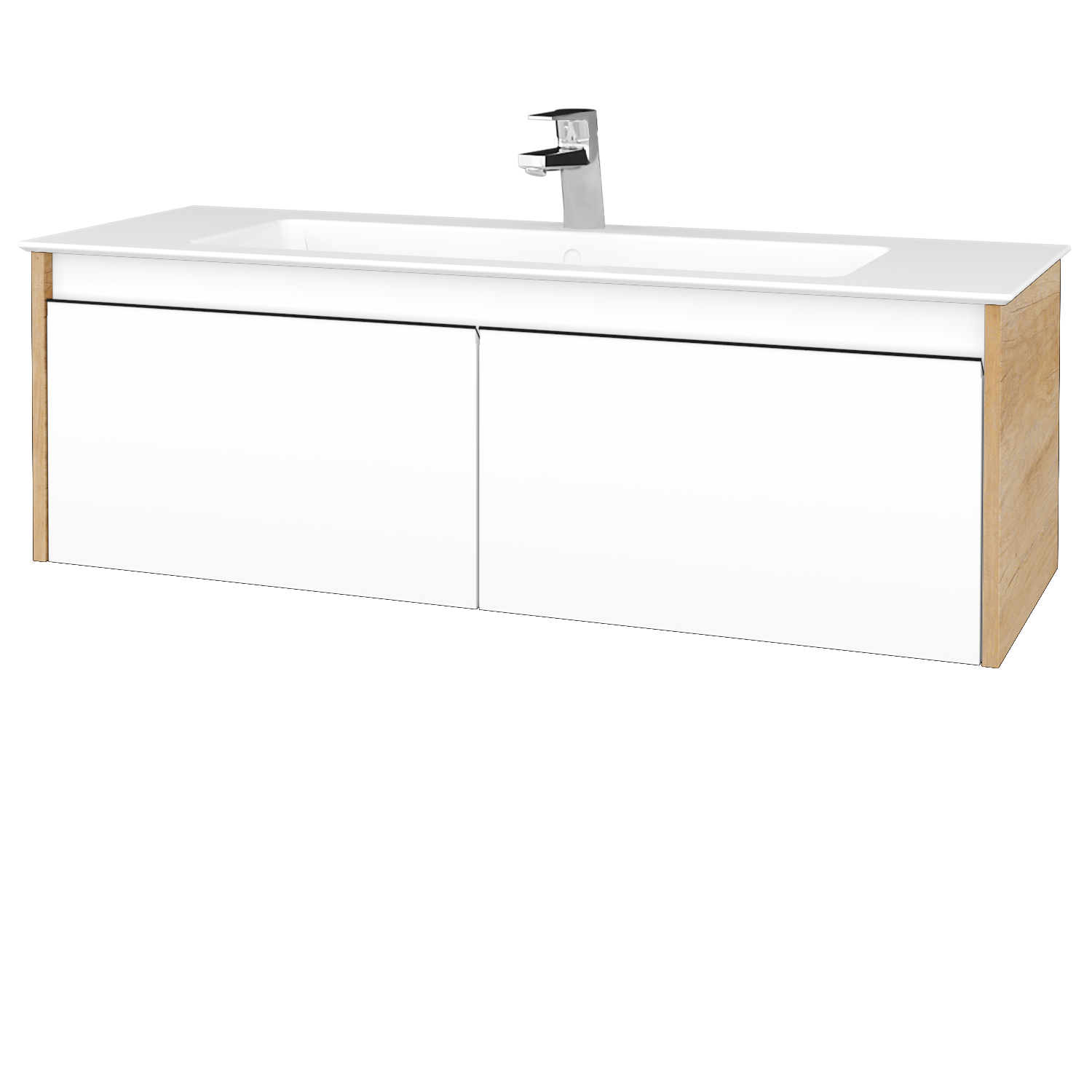 Prezrieť katalógZávesná umývadlová skrinka (1200x390x445) s 2 zásuvkami a keramickým umývadlom Pura 120 Zobraziť viac