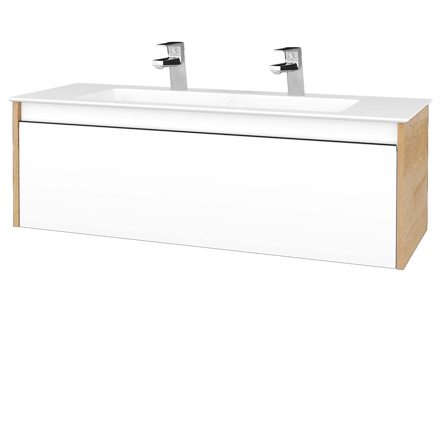 Umývadlová skrinka (1200×420×445) s 2 zásuvkami a keramickým umývadlom Pura 120 s 2 otvormi na…