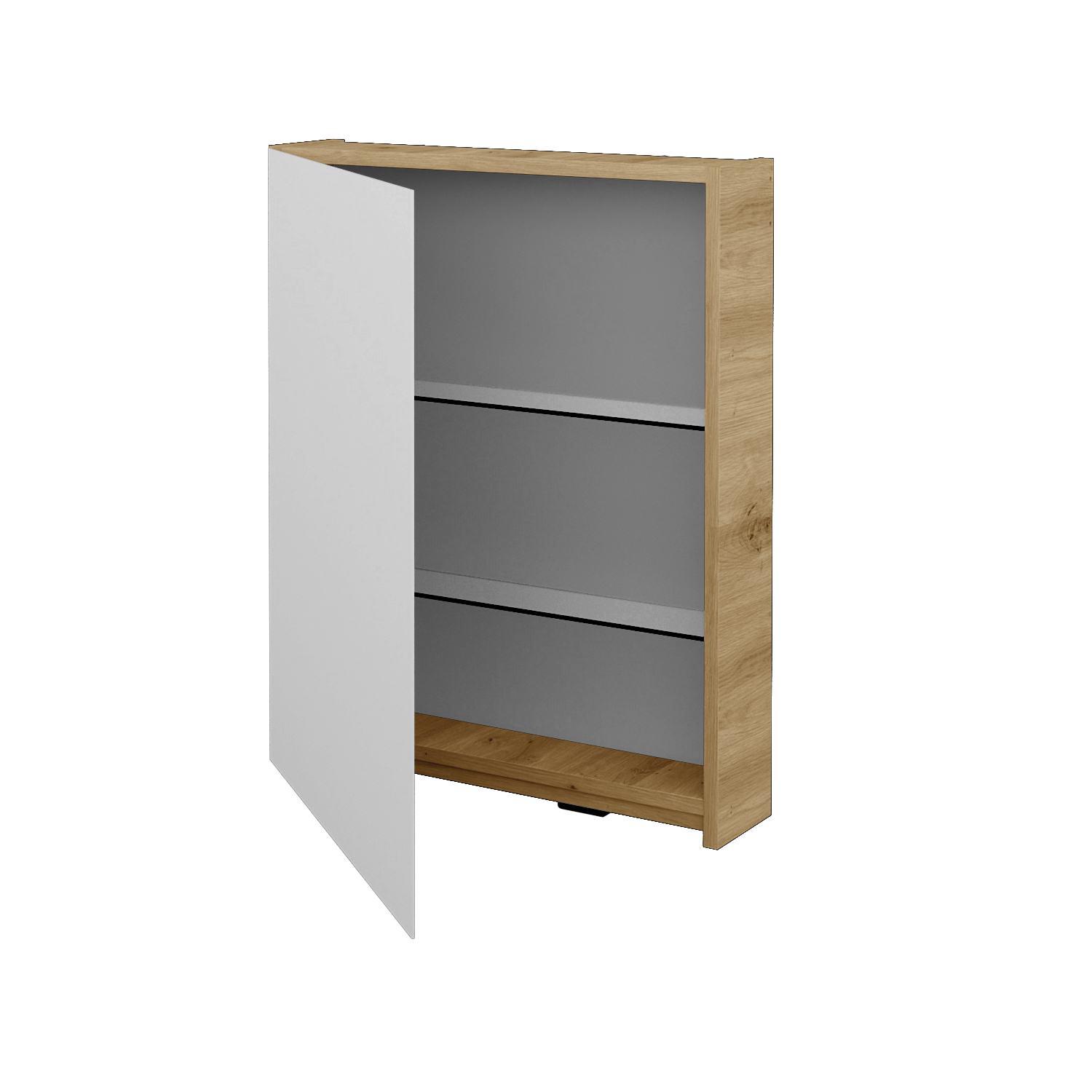 Jednodverová zrkadlová skrinka PREMIUM GAE 60 je konštruovaná s ohľadom na maximálny komfort. Dvierka galérky sú obojstranne zrkadlové, čo ocenia najmä viacčlenné rodiny, ktoré trávia spoločný čas rannou alebo večernou hygienou. Veľkou výhodou dvierok je ich otváranie za presah v spodnej časti a tlmené dovieranie, ktoré zaisťujú kovové pánty značky Hettich. Vo vnútri galérky sú k dispozícii 2 sklenené police, ktoré si môžete ľubovoľne výškovo nastaviť podľa vlastných potrieb.