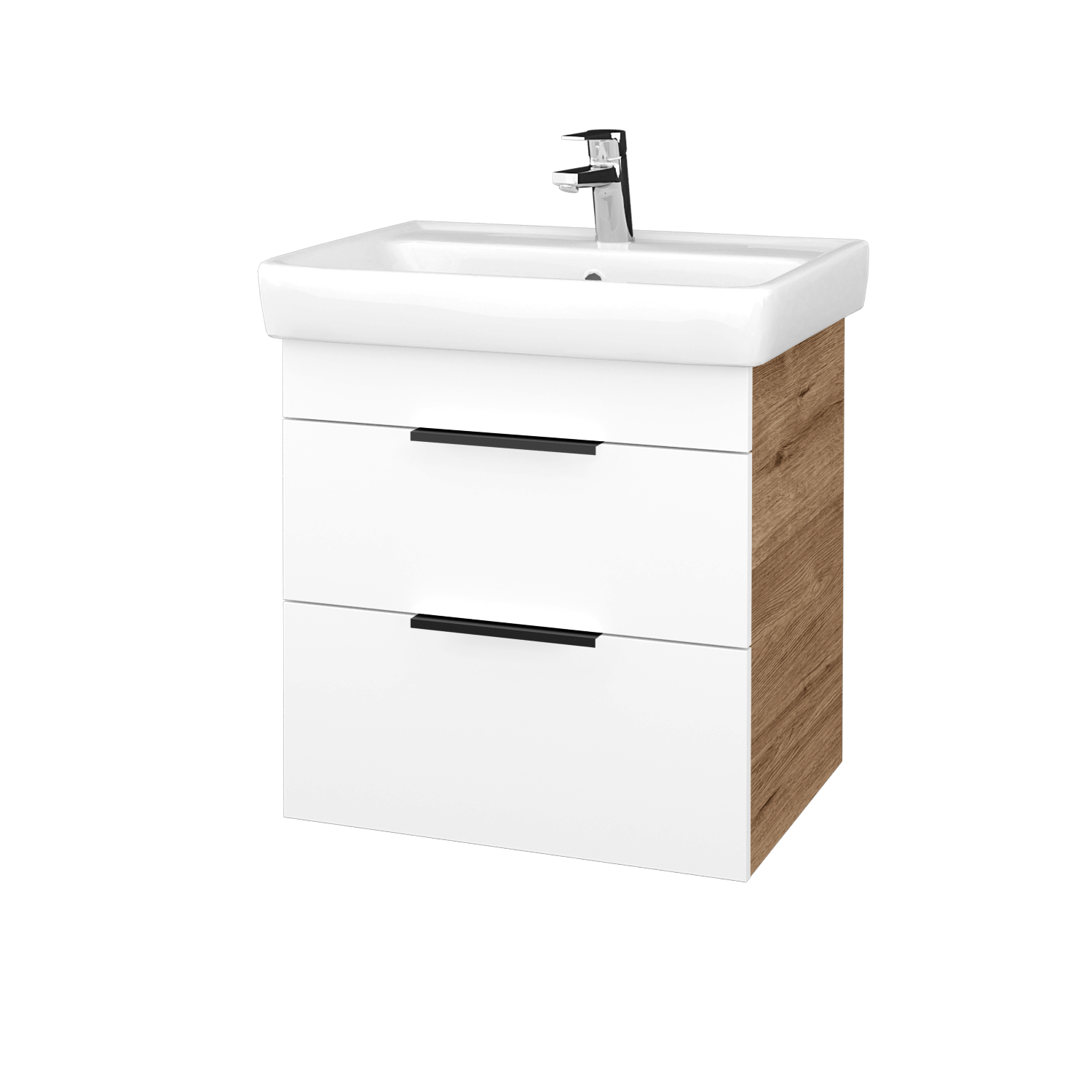 Závesná umývadlová skrinka (545x560x436) s 2 zásuvkami a keramickým umývadlom Q 60