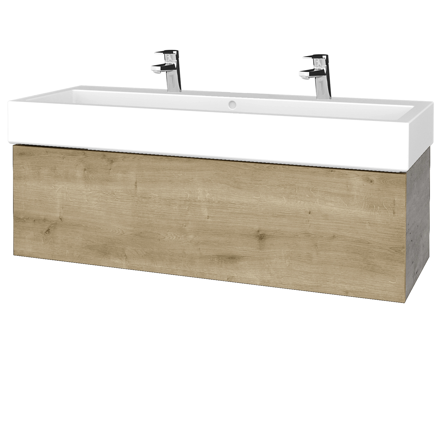 Umývadlová skrinka (1200x500x445) s 2 zásuvkami a keramickým umývadlom Pura 120 s 2 otvormi na…