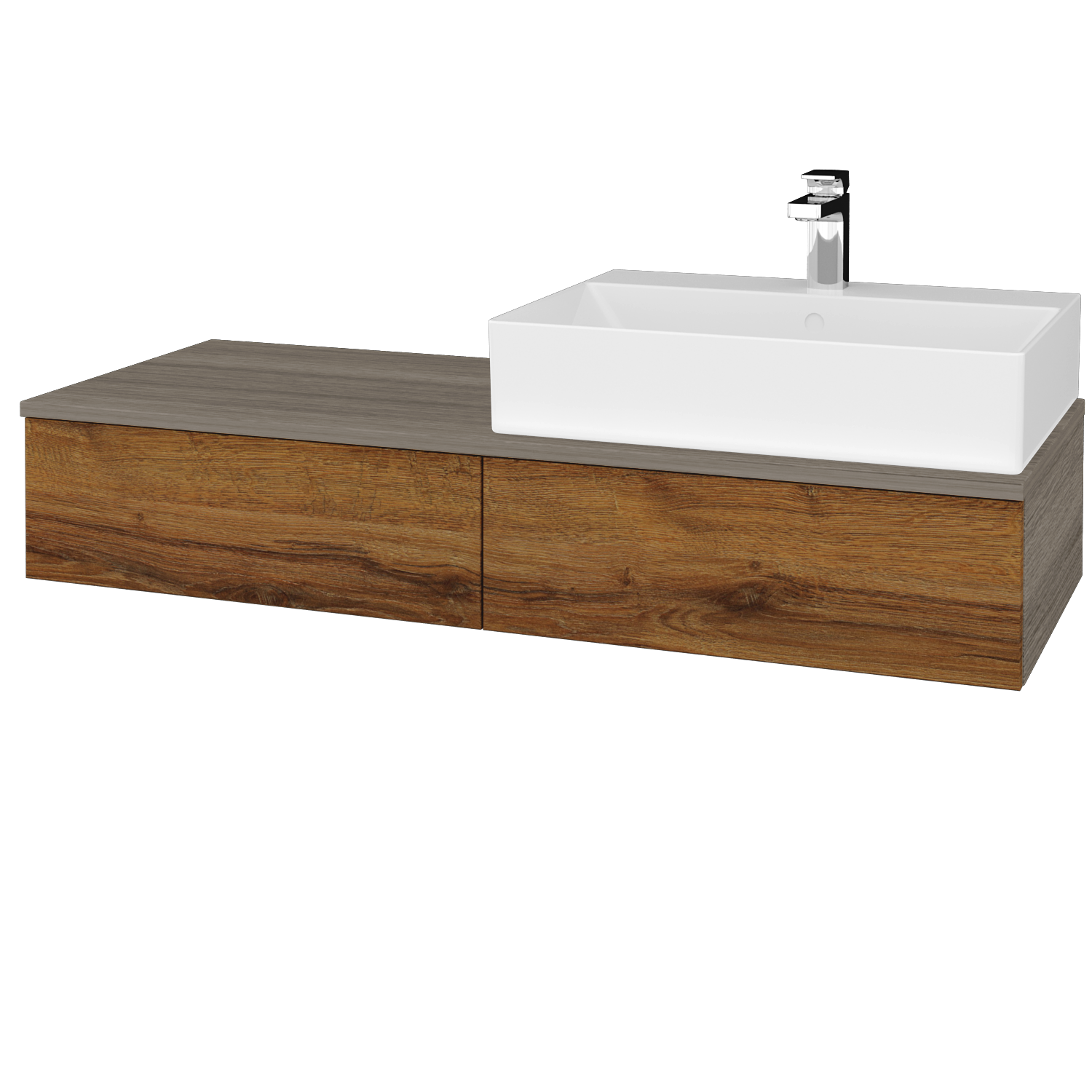Súčasťou ceny skrinky je kvalitné keramické umývadlo Kube s prepadom a odkladacou plochou v zadnej časti umývadla.