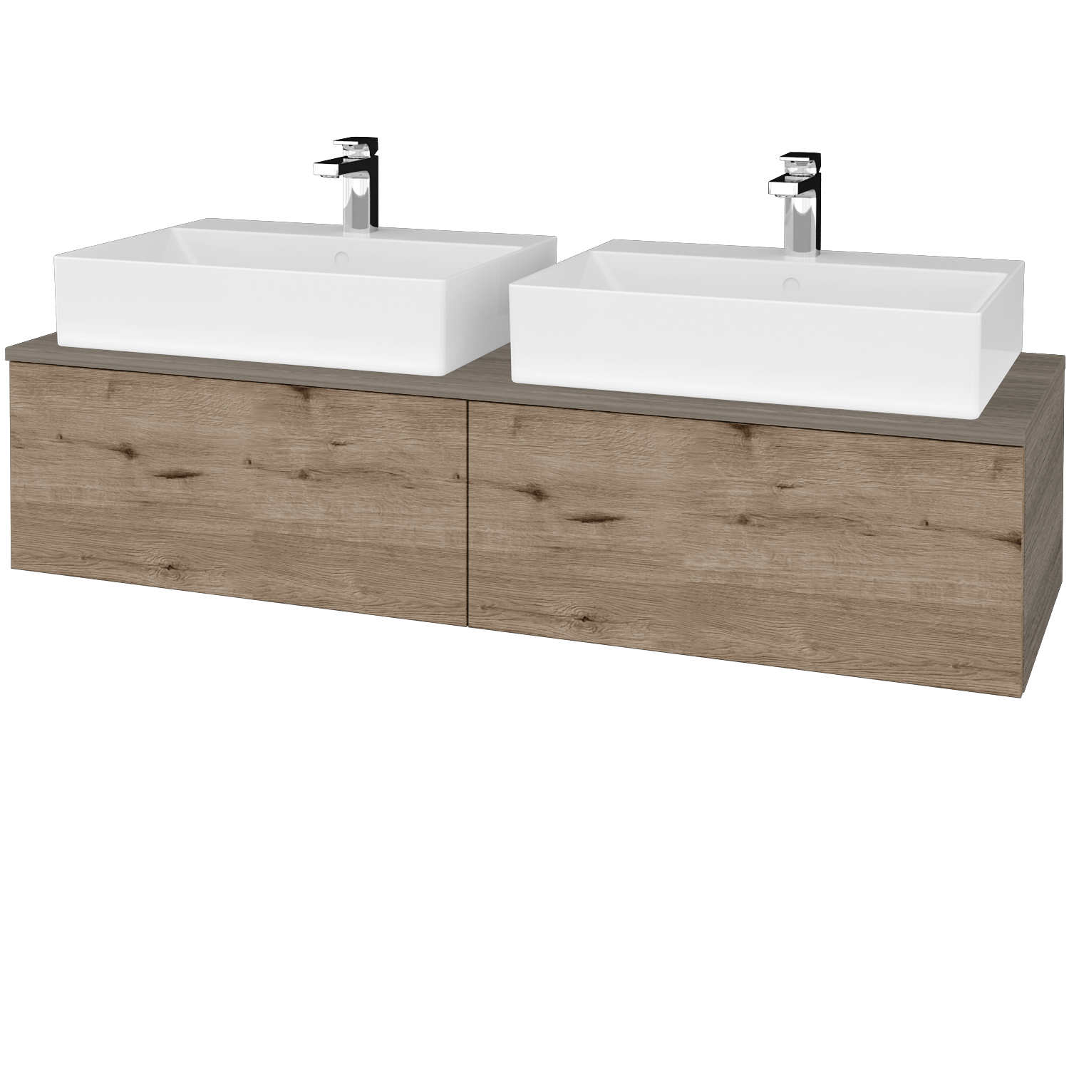 Súčasťou ceny skrinky sú tiež dve kvalitné keramické umývadlá Kube s prepadom a odkladacou plochou v zadnej časti umývadla.
