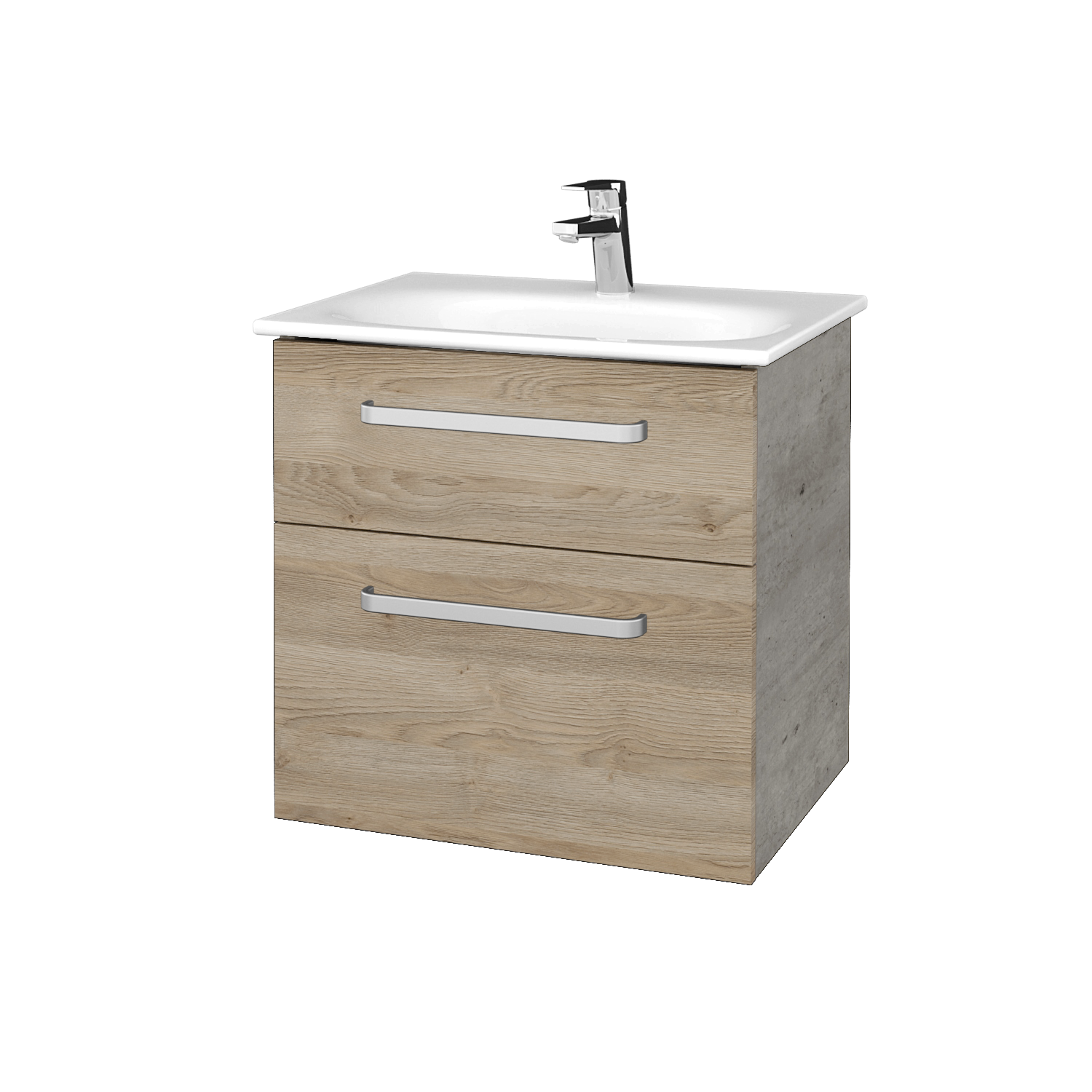 Závesná umývadlová skrinka (545x560x436) s 2 zásuvkami a keramickým umývadlom Q 60