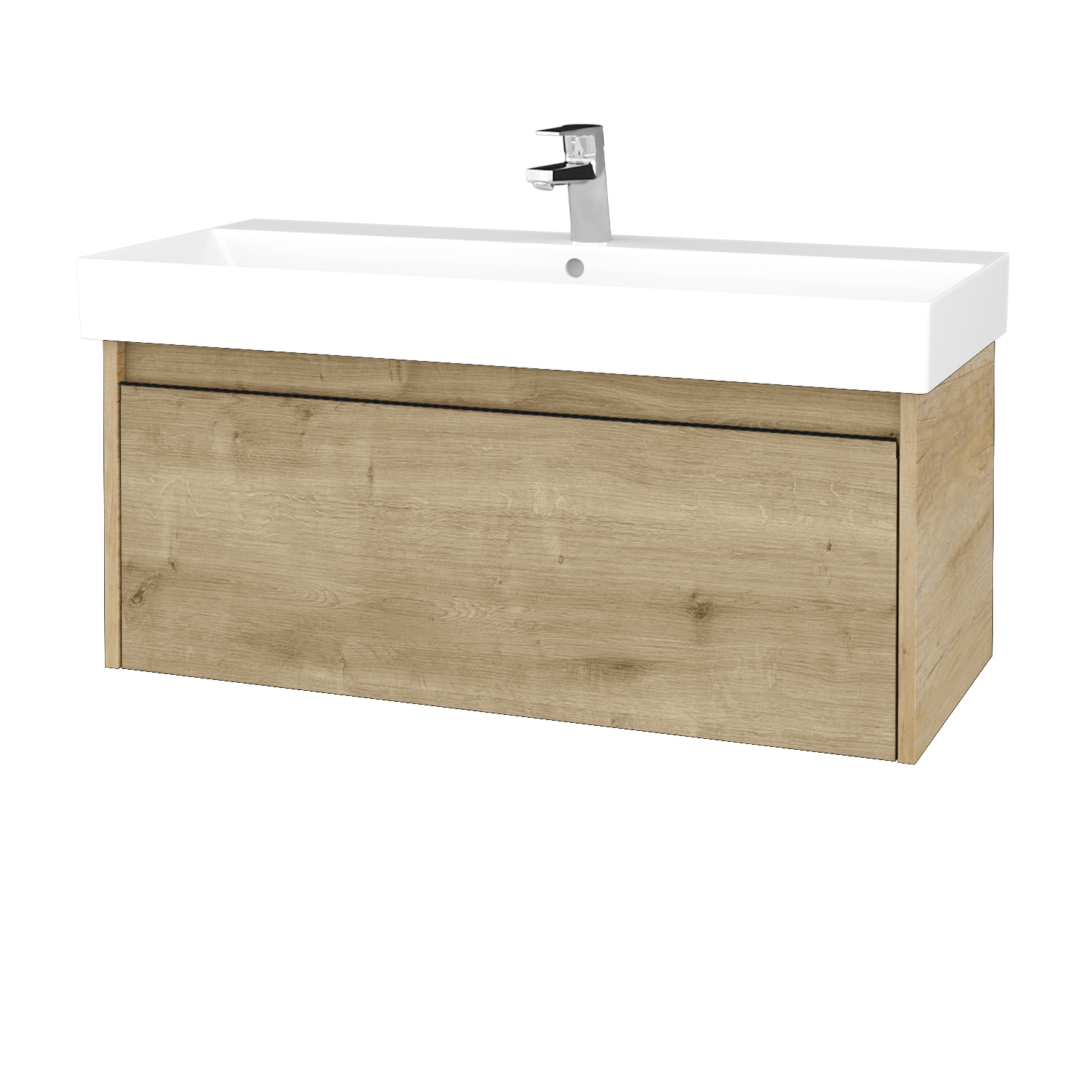Závesná umývadlová skrinka BONO SZZ 100 nájde svoje miesto v akejkoľvek kúpeľni. Ak je pre vašu kúpeľňu ideálna šírka 100 cm, potom sa poďme pozrieť na ďalšie aspekty tejto skrinky, ktorá vyniká čistým dizajnom a priestrannou vysokou zásuvkou. Do tej ľahko uložíte všetky nevyhnutnosti, a vďaka organizérom udržíte na svojom mieste aj drobné predmety. Na pohodlné otváranie zásuvky slúži zafrézovaná úchytka, ktorá nijak neruší celkový dizajn. Úchytku si môžete vybrať v dvoch farbách – čierna (T33) a strieborná (T34). Zásuvka je umiestnená na kovových pojazdoch nemeckej značky Hettich, na ktoré získate doživotnú záruku. Na celú skrinku sa vzťahuje naša predĺžená záruka 5 rokov.