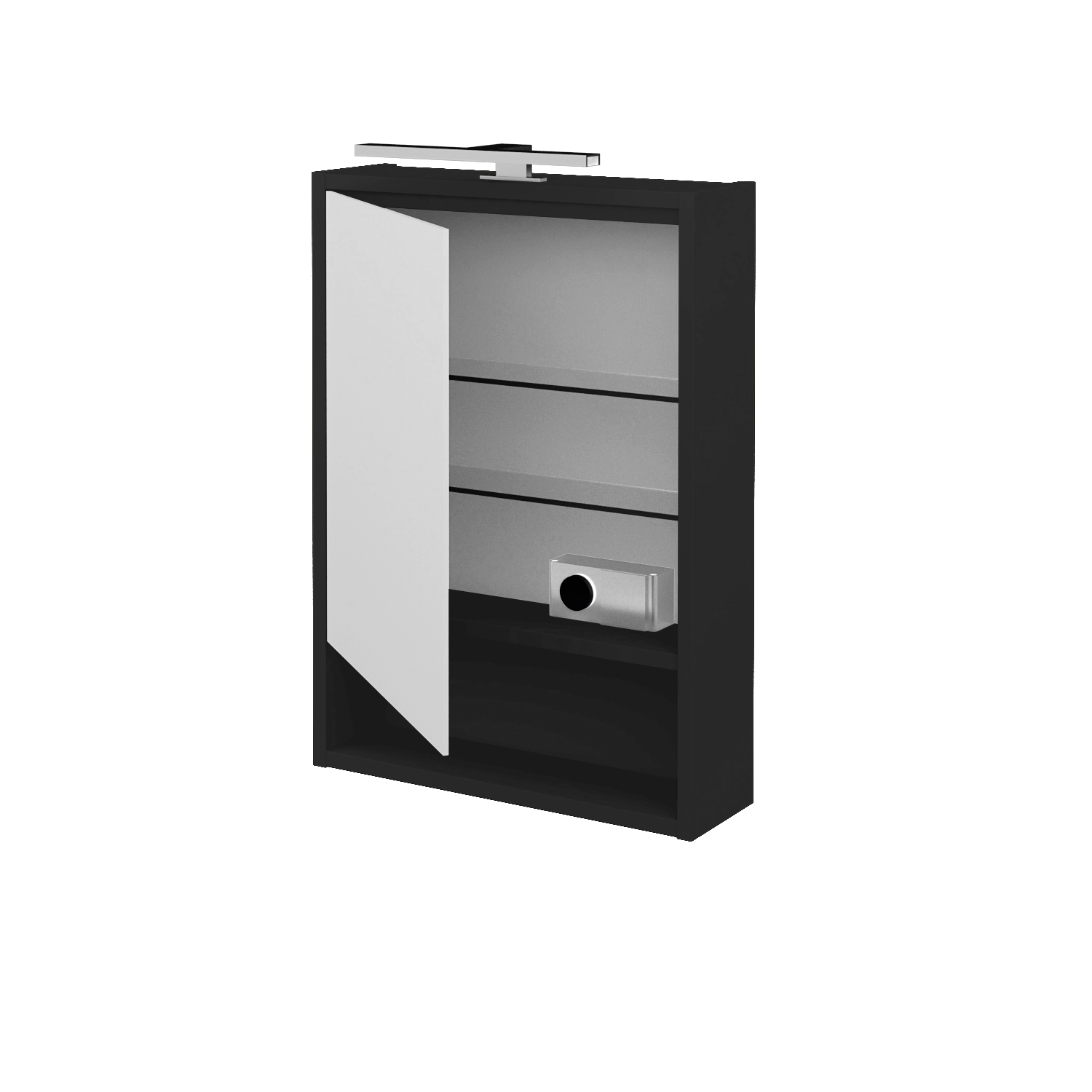 Externé LED osvetlenie PINO 300 (5 W) sa ovláda pomocou vypínača vo vnútri skrinky. Okrem toho tam nájdete aj elektrickú zásuvku, vďaka ktorej bude úprava vlasov a brady o niečo pohodlnejšia. Galérka spĺňa krytie IP 44. V celkovej cene je zahrnuté LED osvetlenie aj zásuvka.