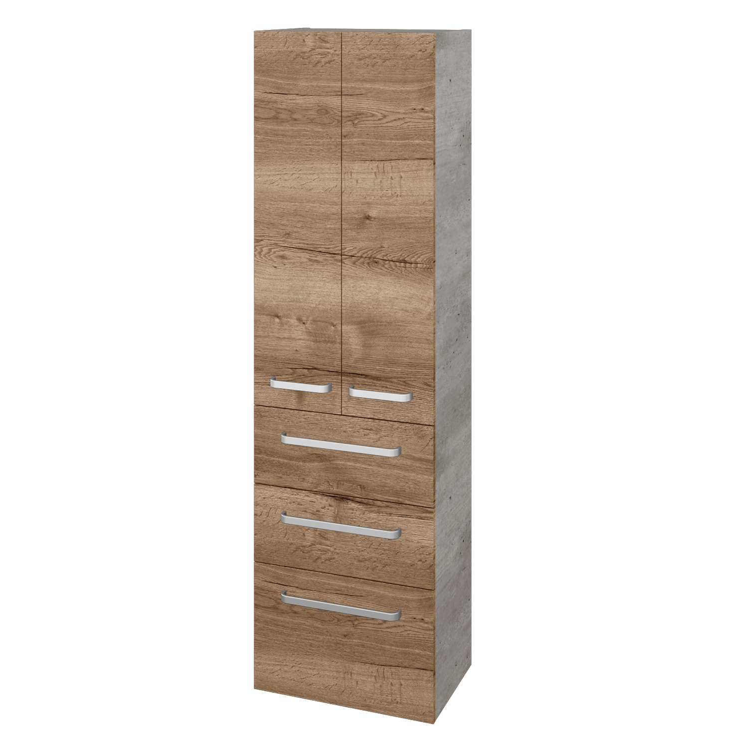 Do priestrannej vysokej skrine DOS SVD2Z3 50 uložíte naozaj všetko. Skriňa je rozdelená na hornú časť, ktorá má za dvierkami 2 výškovo nastaviteľné police, a na spodnú časť, ktorú tvoria 3 rôzne vysoké zásuvky. Máte mnoho možností, ako usporiadať tento úložný priestor. 50 cm široká skrinka tak v kúpeľni pomôže s udržiavaním poriadku ľahko a veľmi rýchlo. Vyberte si z niekoľkých typov úchytiek, ktoré pomôžu doladiť vašu kúpeľňu.