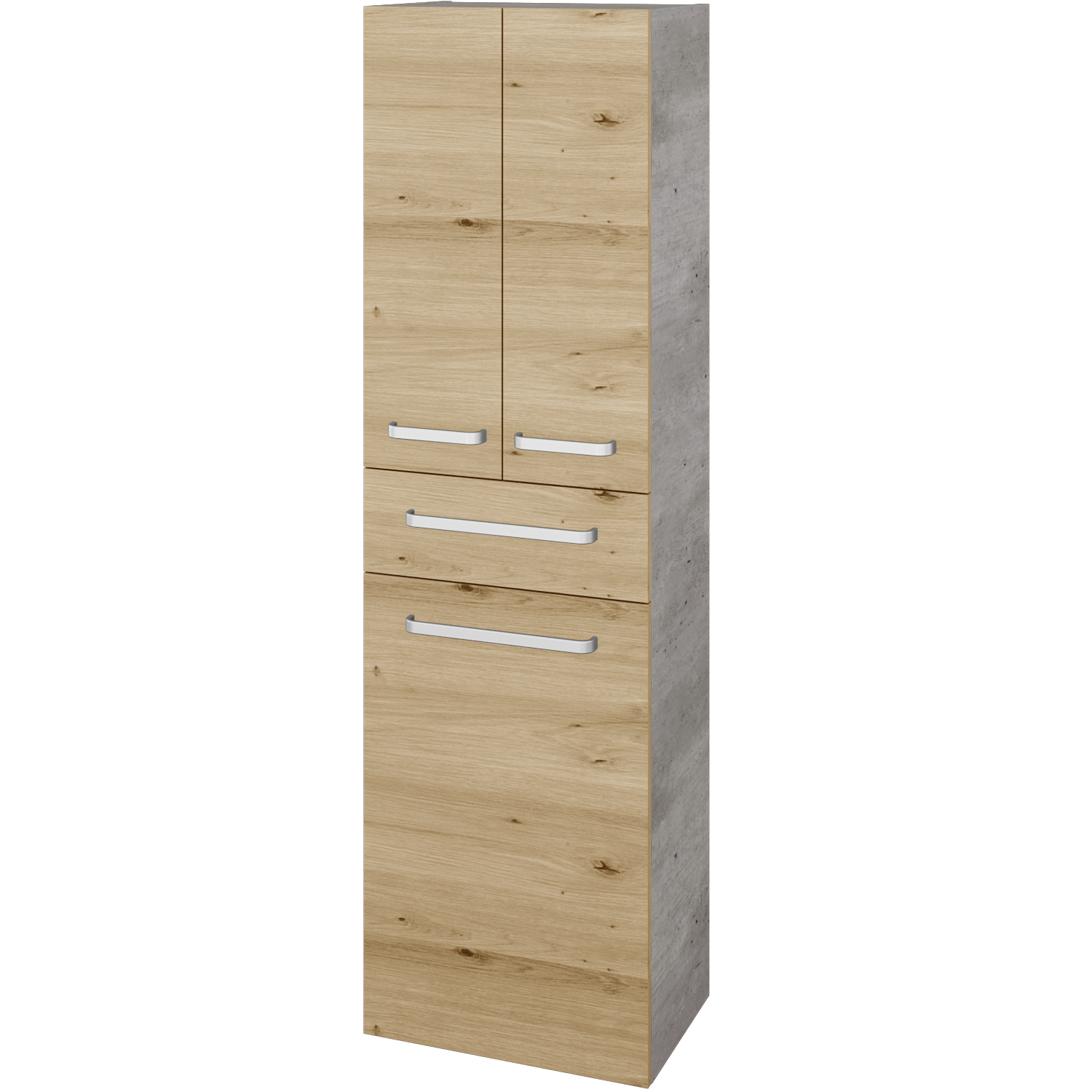 Priestranná vysoká skriňa DOS SVD3ZK 50 je ideálnou doplnkovou skrinkou do kúpeľne početnej domácnosti. V hornej časti nájdete za 2 dvierkami priestor s 2 výškovo nastaviteľnými policami. Ľahko si tak prispôsobíte vnútro skrine svojim potrebám. Uprostred nájdete zásuvku, ktorá je svojou prístupnosťou ideálnym miestom na každodenné drobnosti. V spodnej polovici sa skrýva veľký kôš na bielizeň s objemom 50 l, ktorý je inštalovaný do výklopných dvierok. Z týchto dvierok sa dá kôš na bielizeň jednoducho vybrať a znovu uložiť, čo oceníte napríklad v prípade, že nemáte práčku v kúpeľni. Verte, že do 50 l koša se vojde špinavá bielizeň celej rodiny. Vyberte si z niekoľkých typov úchytiek, ktoré pomôžu doladiť vašu kúpeľňu.