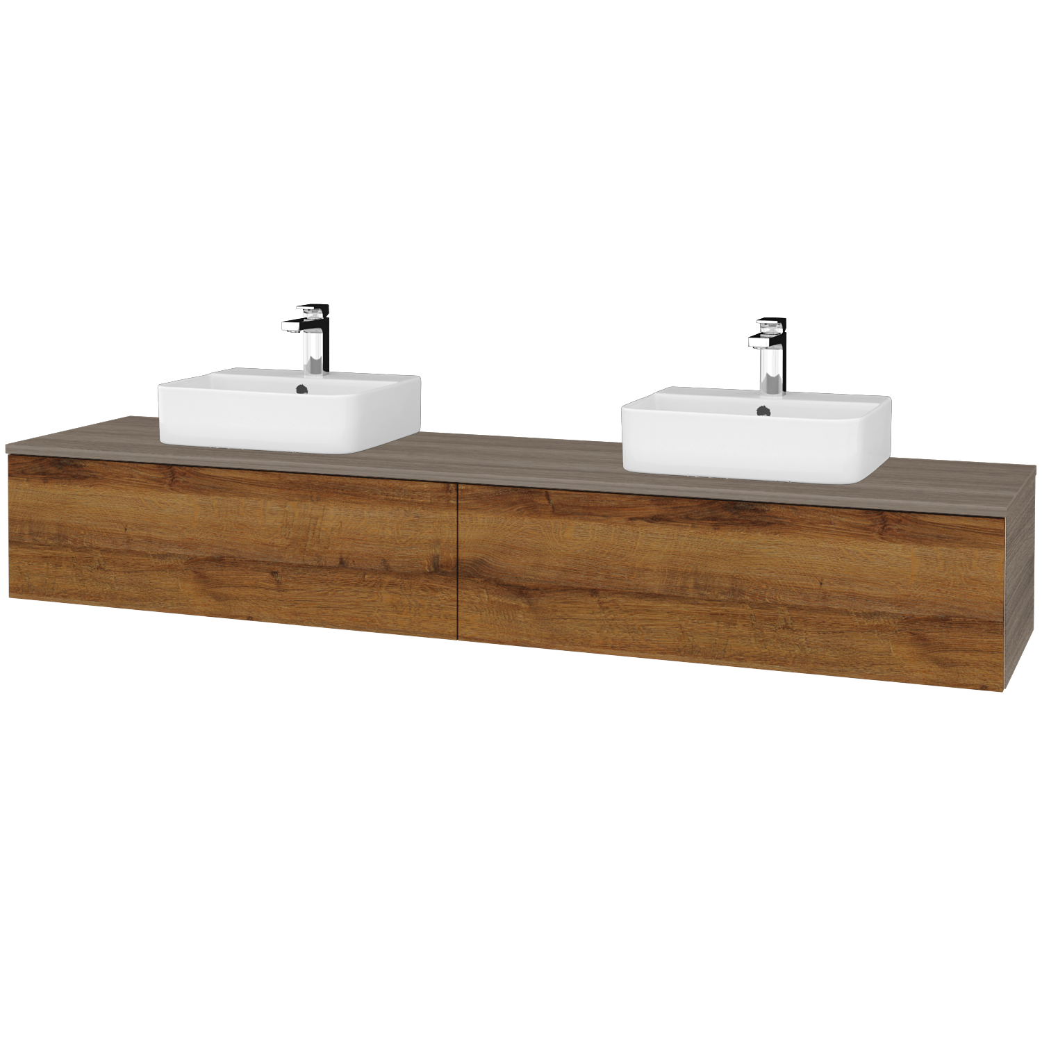 Prezrieť katalógUmývadlová skrinka o šírke 200 cm s 2 veľkými zásuvkami a 2 keramickými umývadlami Joy 3 Zobraziť viac