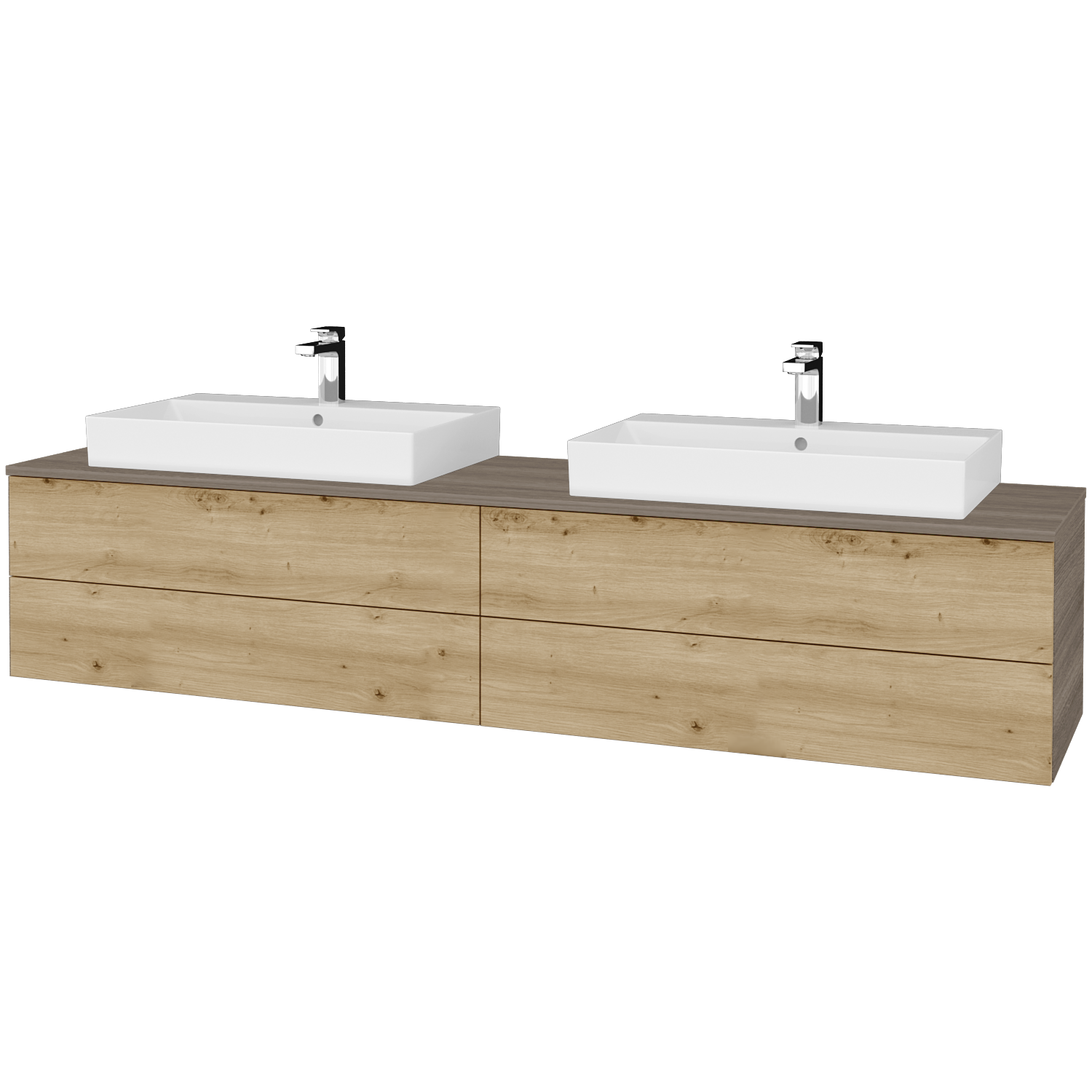 Máte priestornú kúpeľňu a túžite po veľkom a elegantnom nábytku? Umývadlová skrinka MODULE SZZ4 200 vás v mnohom prekvapí. Vzdušný a elegantný vzhľad navrhnutý v duchu minimalizmu dopĺňa objemný úložný priestor zásuviek, krásne keramické umývadlá a veľká odkladacia plocha.