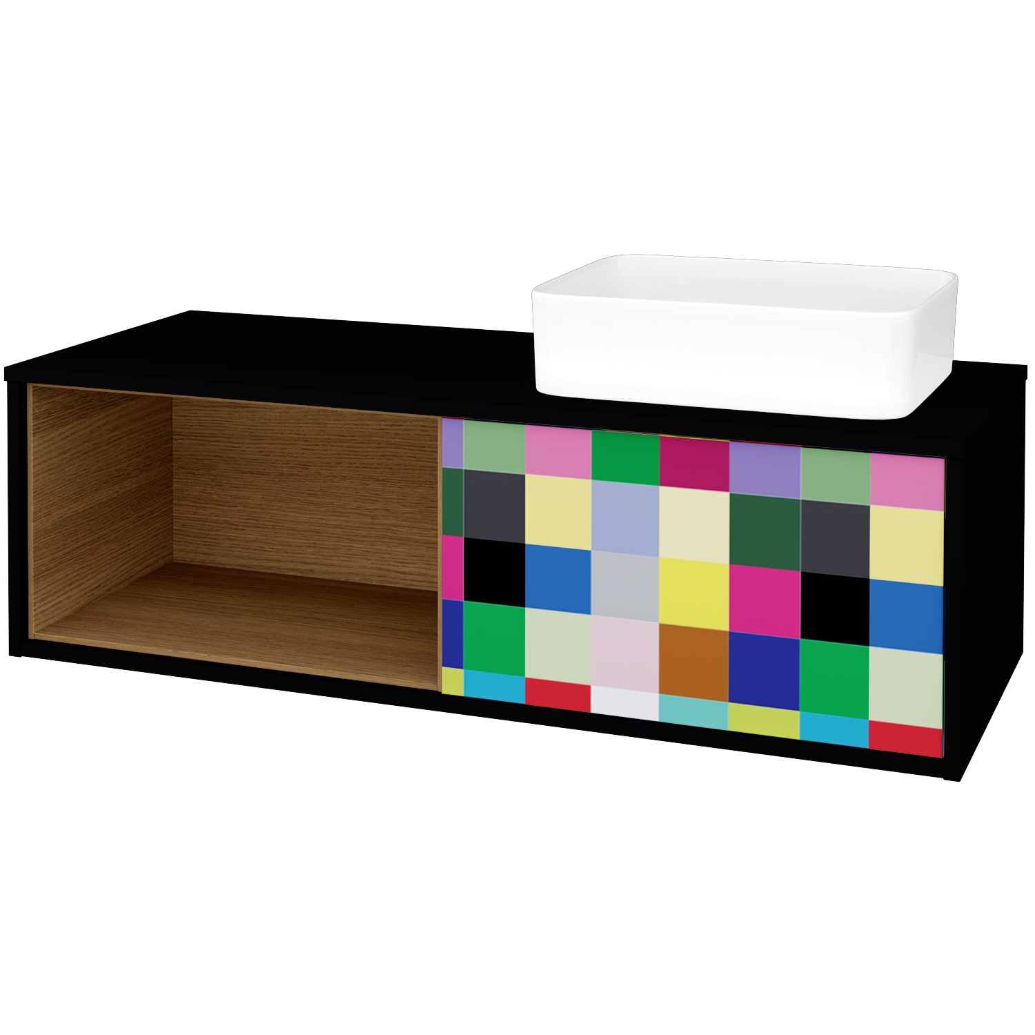 Umývadlová skrinka (1200x370x500) s 1 zásuvkou, nikou vlevo s LED osvetlením vo vnútri a keramickým…