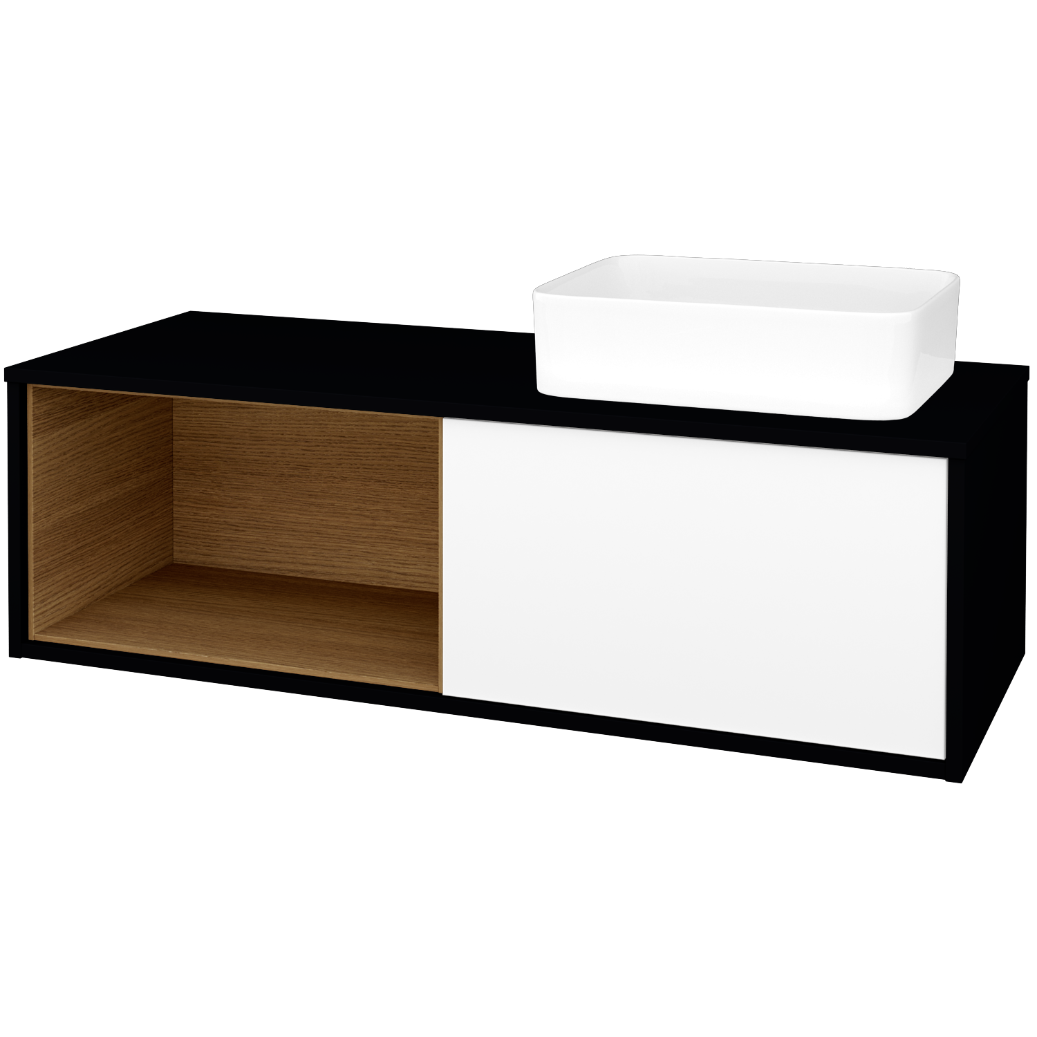 Prezrieť katalógUmývadlová skrinka (1200x370x500) s 1 zásuvkou, nikou vlevo s LED osvetlením vo vnútri a keramickým umývadlom Joy Zobraziť viac