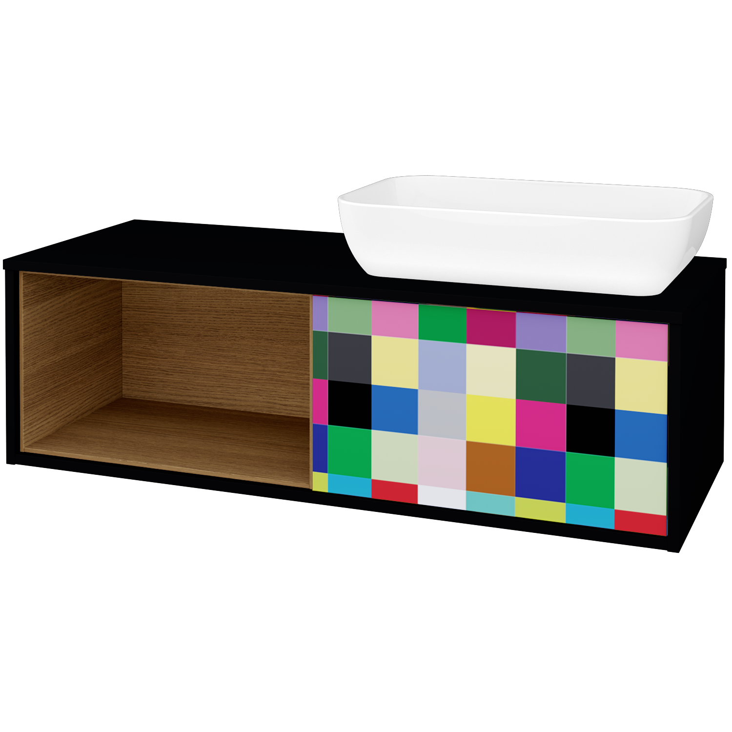 Prezrieť katalógUmývadlová skrinka (1200x370x500) s 1 zásuvkou, nikou vlevo s LED osvetlením vo vnútri a keramickým umývadlom Felis 1 Zobraziť viac