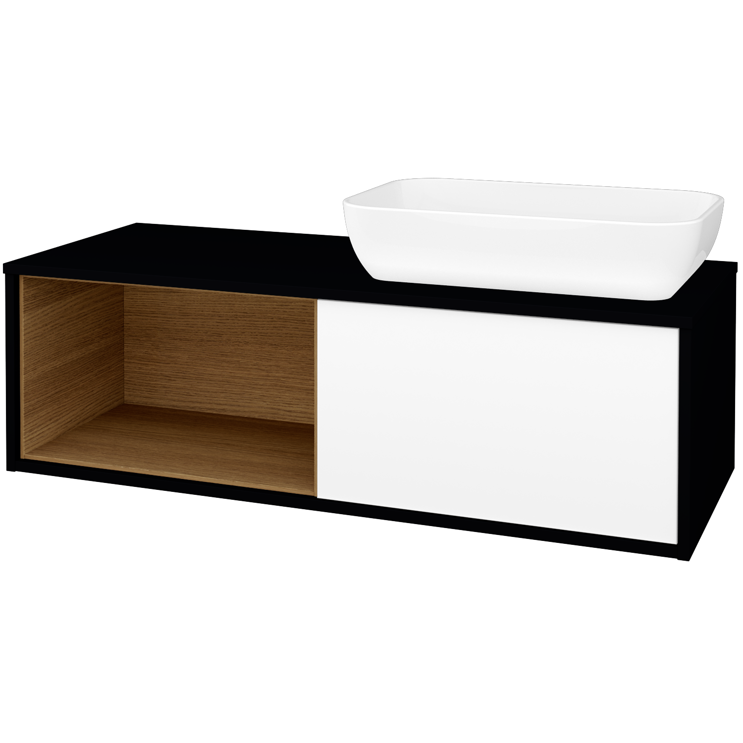 Prezrieť katalógUmývadlová skrinka (1200x370x500) s 1 zásuvkou, nikou vlevo s LED osvetlením vo vnútri a keramickým umývadlom Felis 1 Zobraziť viac
