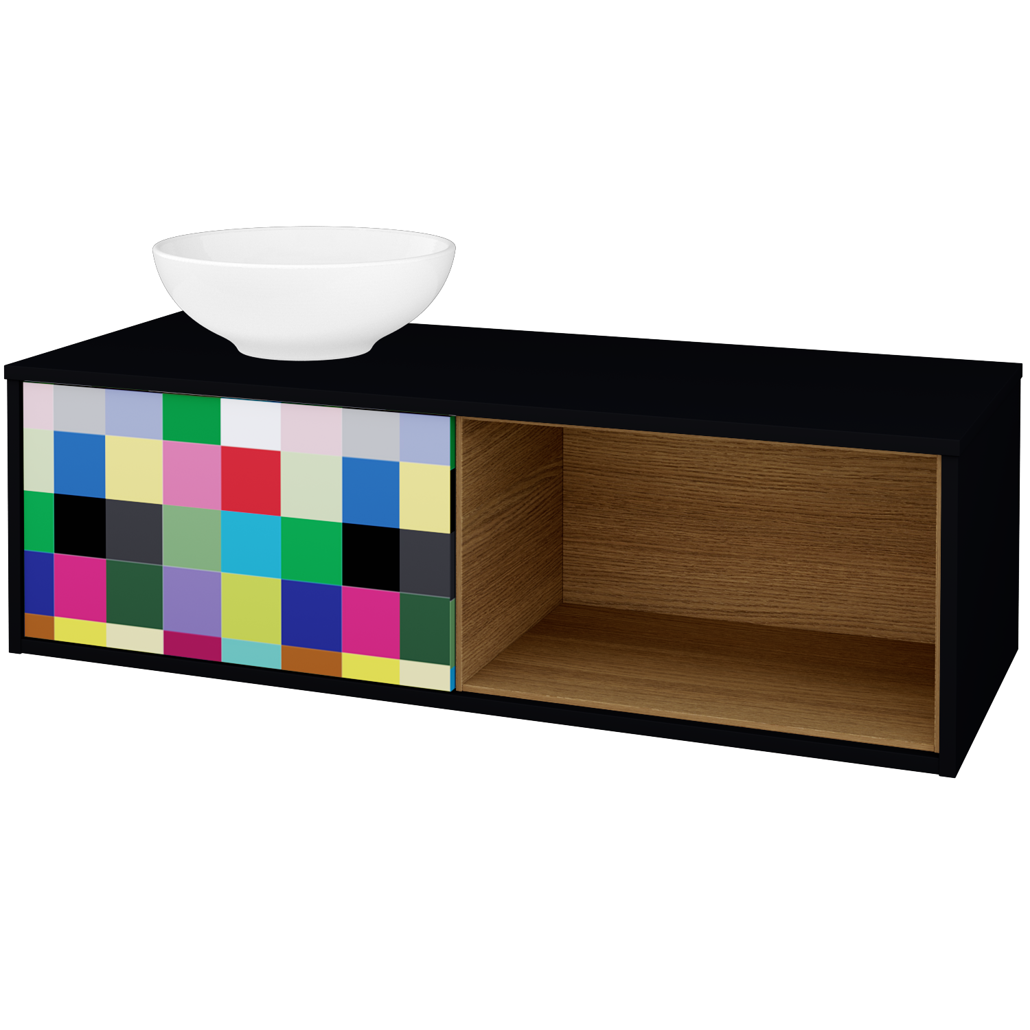Prezrieť katalógUmyvadlová skrinka (1200x370x500) s 1 zásuvkou, nikou na pravej strane s LED osvetlením vnútri a keramickým umývadlom Nikolo 1 Zobraziť viac