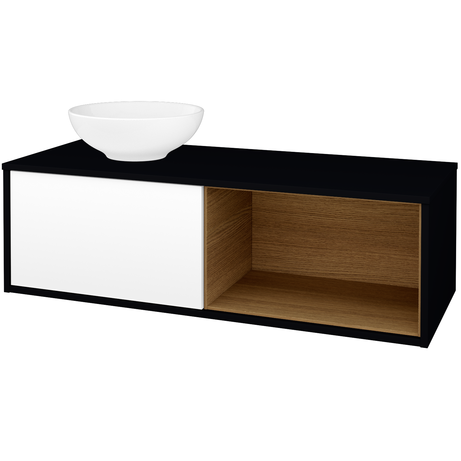 Prezrieť katalógUmyvadlová skrinka (1200x370x500) s 1 zásuvkou, nikou na pravej strane s LED osvetlením vnútri a keramickým umývadlom Nikolo 1 Zobraziť viac