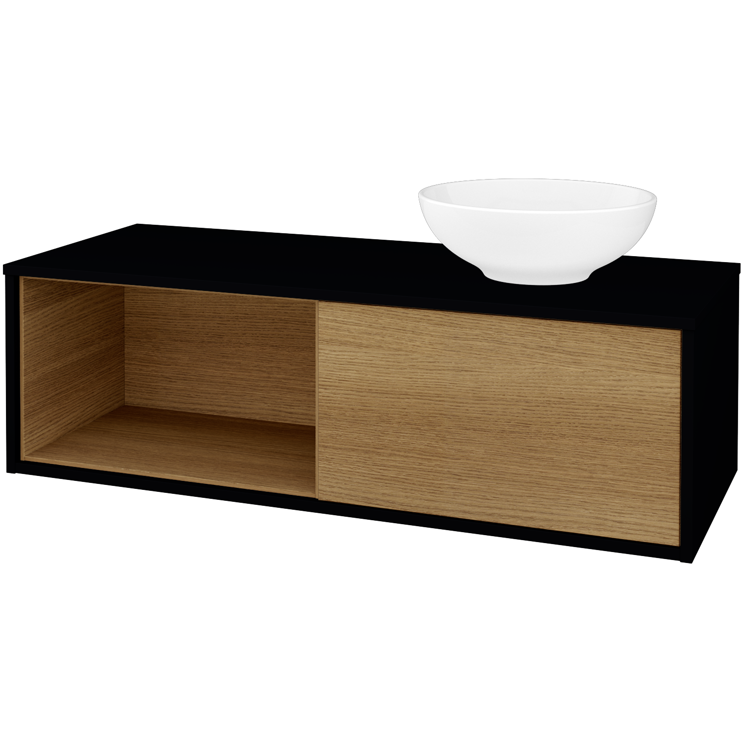 Prezrieť katalógUmývadlová skrinka (1200x370x500) s 1 zásuvkou, nikou vlevo s LED osvetlením vo vnútri a keramickým umývadlom Nikolo 1 Zobraziť viac