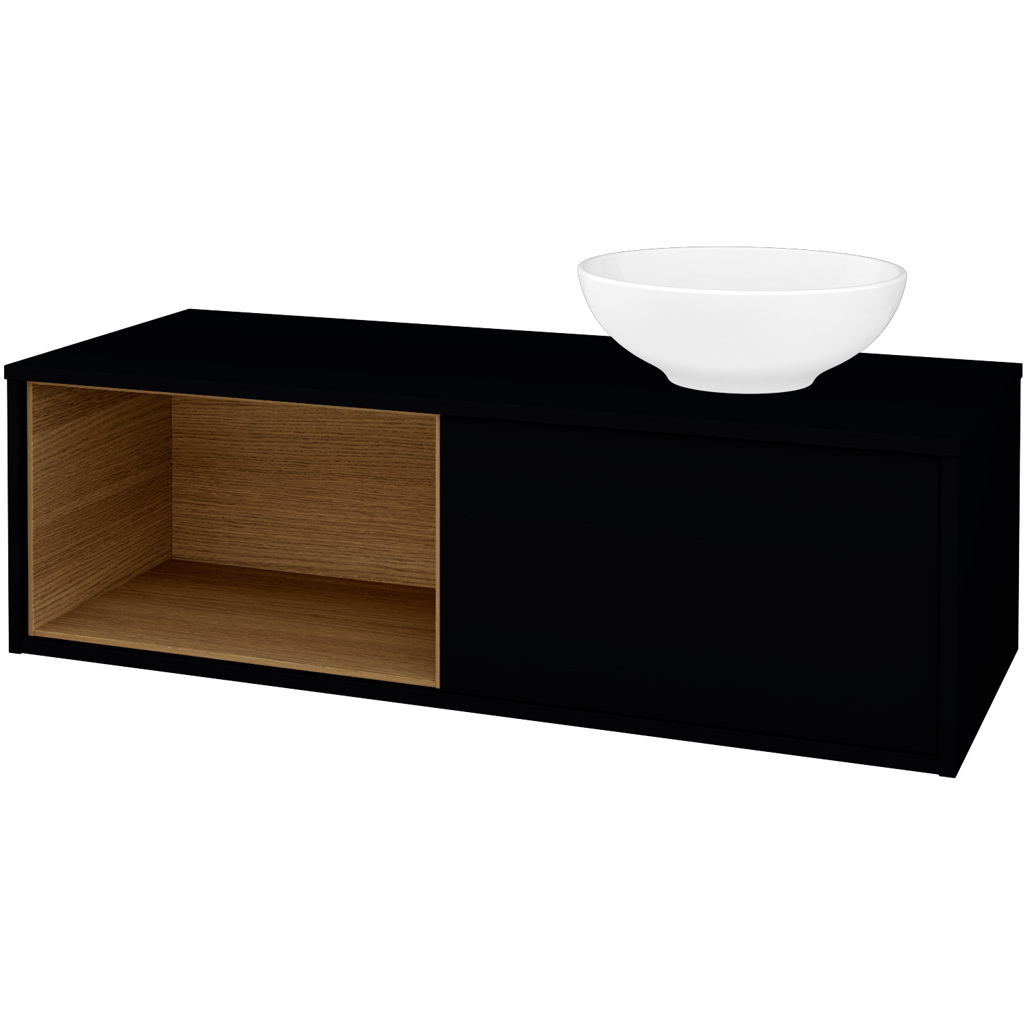 Prezrieť katalógUmývadlová skrinka (1200x370x500) s 1 zásuvkou, nikou vlevo s LED osvetlením vo vnútri a keramickým umývadlom Nikolo 1 Zobraziť viac