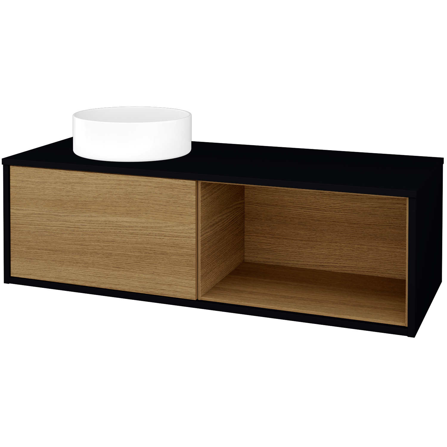 Prezrieť katalógUmývadlová skrinka (1200x370x500) s 1 zásuvkou, nikou vpravo s LED osvetlením vo vnútri a keramickým umývadlom Circo Zobraziť viac