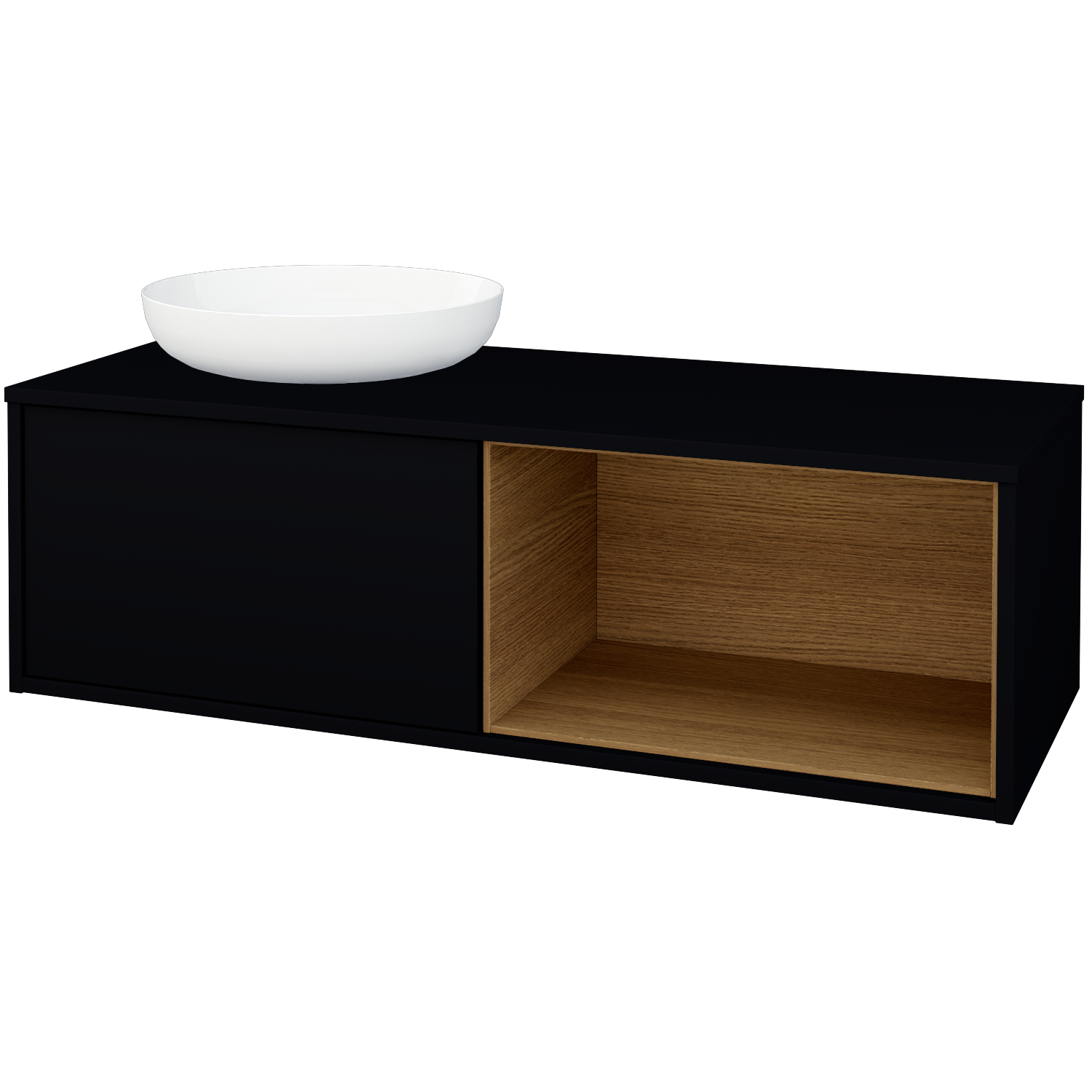 Prezrieť katalógUmývadlová skrinka (1200x370x500) pod umývadlo Kaldewei Miena (nie je zahrnuté v cene) s 1 zásuvkou, nikou vpravo s LED osvetlením vo vnútri Zobraziť viac