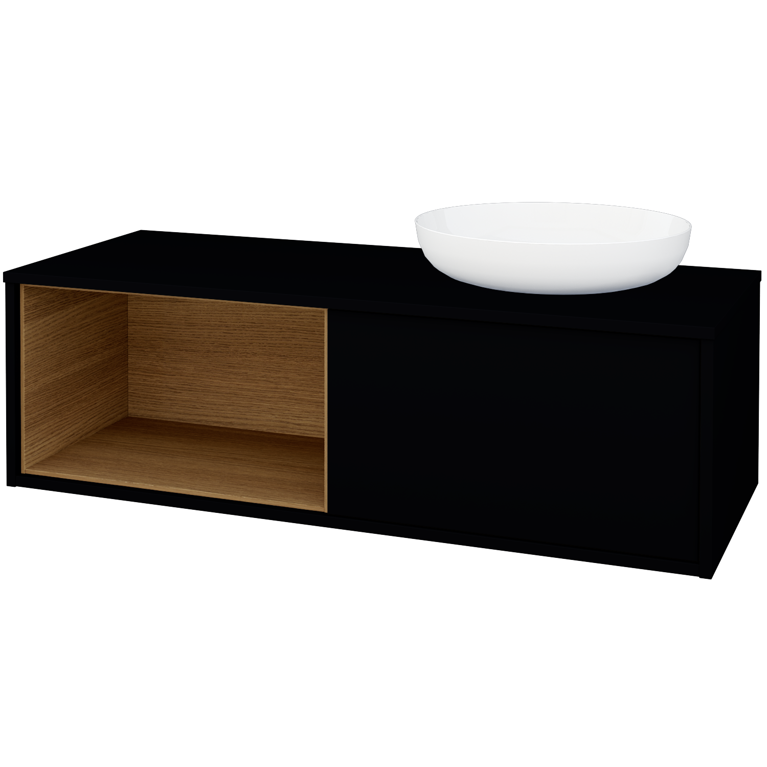 Prezrieť katalógUmývadlová skrinka (1200x370x500) pod umývadlo Kaldewei Miena (nie je zahrnuté v cene) s 1 zásuvkou, nikou vlevo s LED osvetlením vo vnútri Zobraziť viac