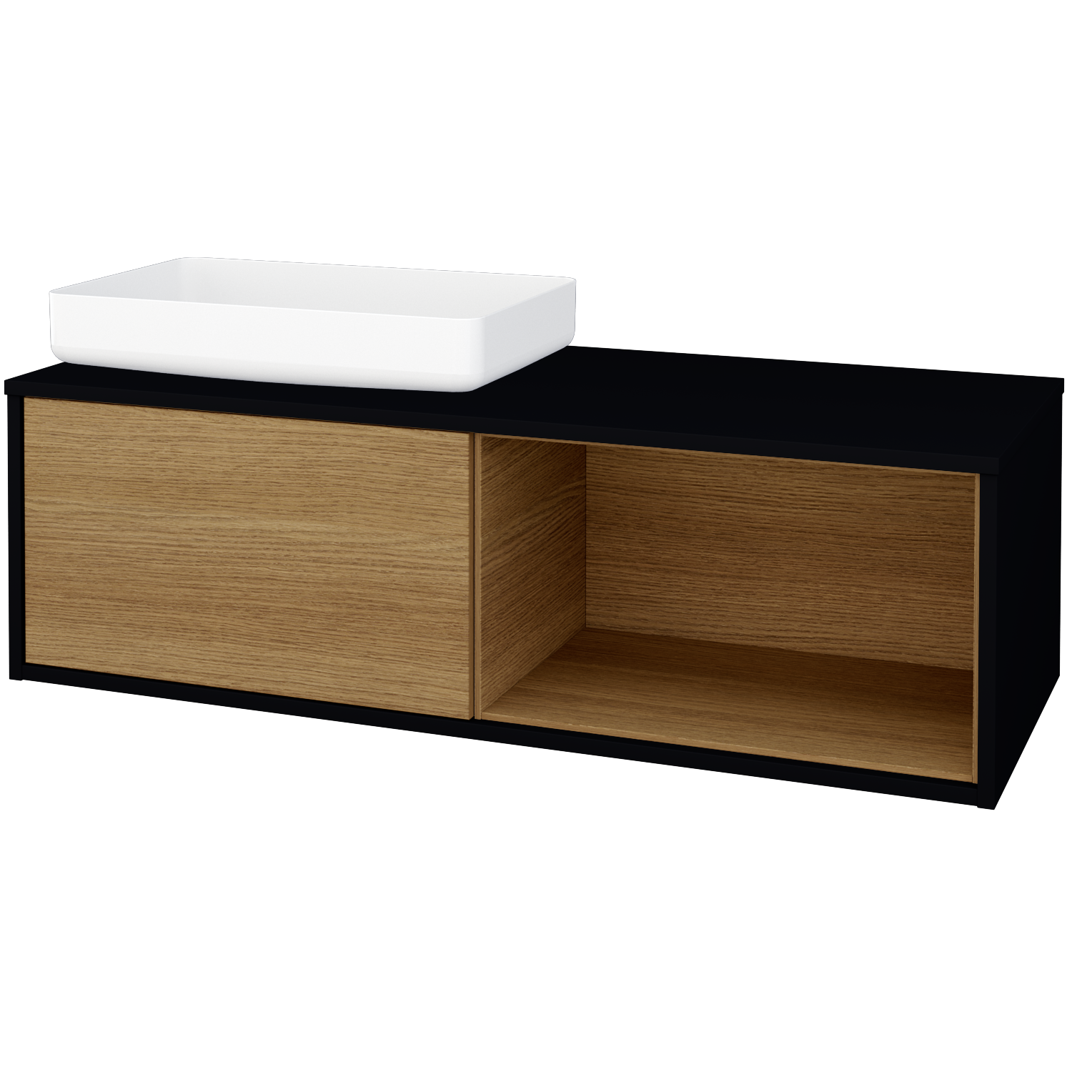 Prezrieť katalógUmývadlová skrinka (1200x370x500) pod umývadlo Kaldewei Miena (nie je zahrnuté v cene) s 1 zásuvkou, nikou vpravo s LED osvetlením vo vnútri Zobraziť viac