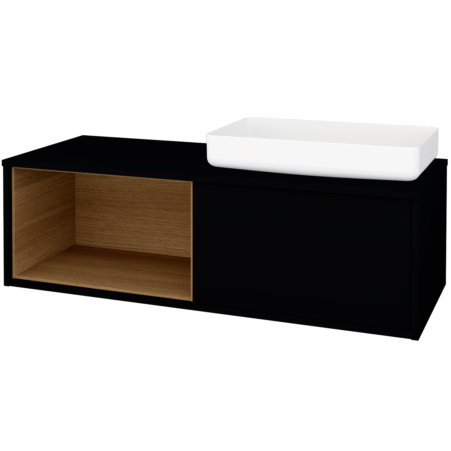 Prezrieť katalógUmývadlová skrinka (1200x370x500) pod umývadlo Kaldewei Miena (nie je zahrnuté v cene) s 1 zásuvkou, nikou vlevo s LED osvetlením vo vnútri Zobraziť viac