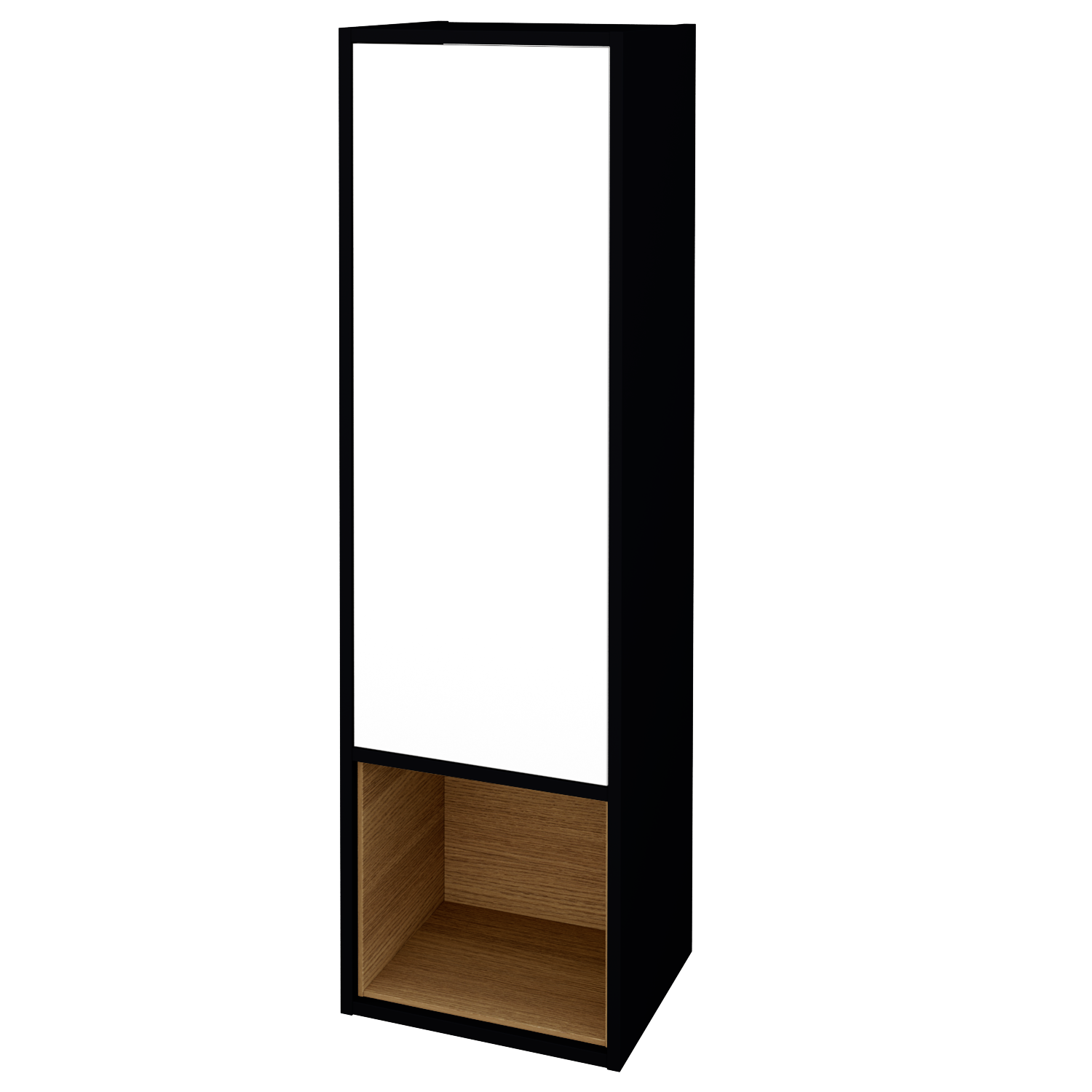 Vysoká skrinka ARTEO má v laku celolakovany korpus a ponúka dve odlišné vyhotovenia čiel dvierok – hladkú, minimalistickú variantu pre čistý moderný vzhľad alebo vyhotovenie s jemným frézovaním, ktoré kúpeľni dodáva štruktúru a eleganciu. Obe varianty sú dostupné v matných lakoch M01 a M17, prípadne môžete využiť program Individual a zvoliť ľubovoľný odtieň zo vzorkovníka RAL alebo NCS. Hladké čelá sú navyše dostupné aj v drevodekore D29 Honey, ktorý vyniká nadčasovým vzhľadom inšpirovaným prírodnou textúrou dreva. Či už uprednostníte jemné línie alebo výraznejšie detaily, vysoká skrinka ARTEO sa prispôsobí vášmu štýlu aj priestoru.