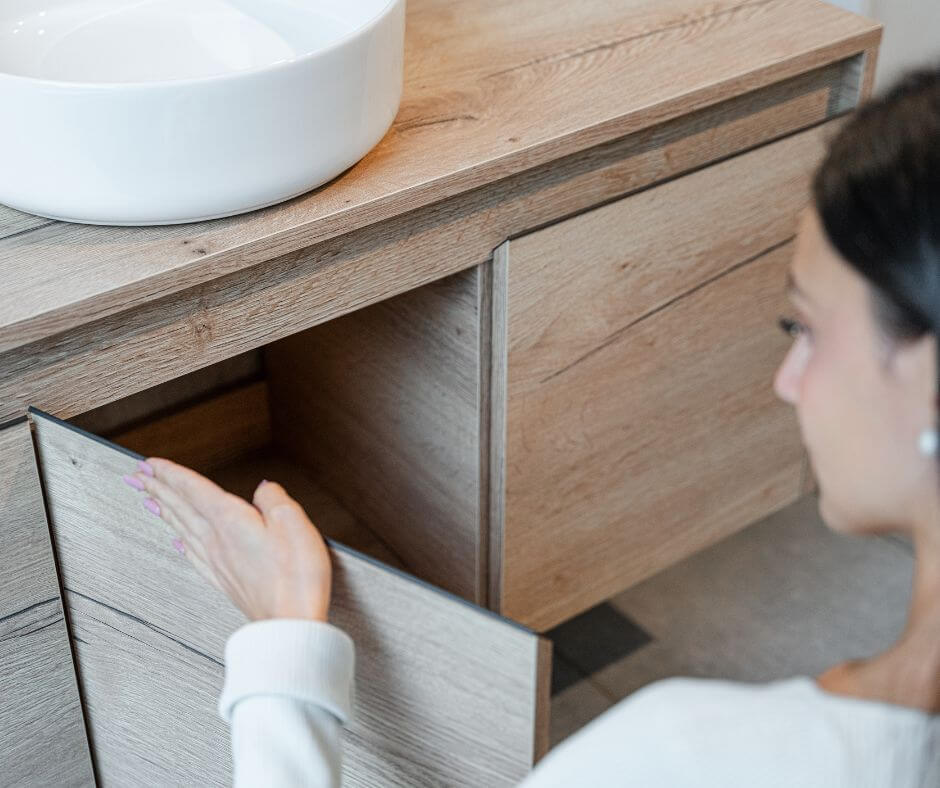 Už ste počuli o materiáli HPL (vysokotlakový laminát)? Vďaka svojim vlastnostiam výrazne zvyšuje odolnosť voči vode aj mechanickému poškodeniu. Hornú dosku skrinky, ktorá je v kúpeľni najviac vystavená kontaktu s vodou, si tak môžete nechať vyrobiť práve z HPL a predĺžiť tým životnosť celej skrinky.